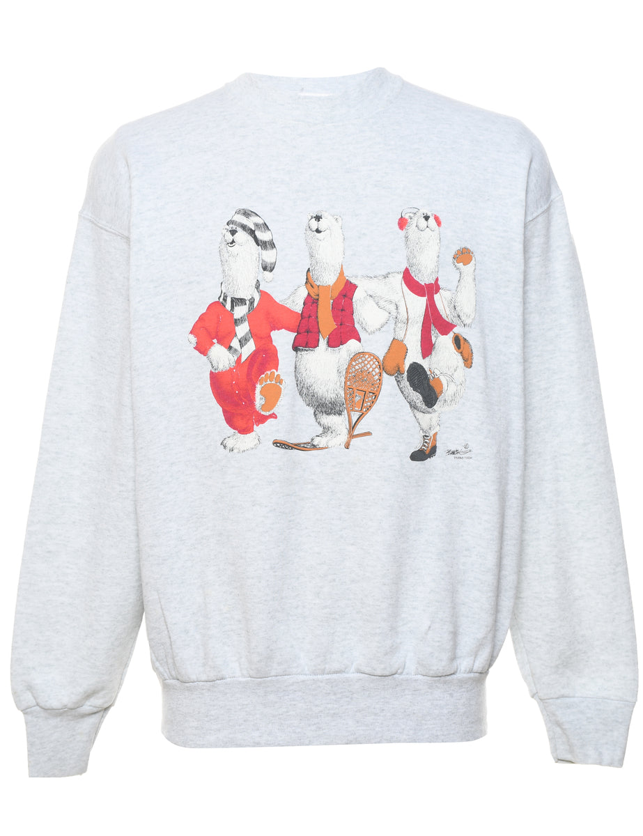 Marl grey 1990s polar bear design sweatshirt complete with a drop shoulder.