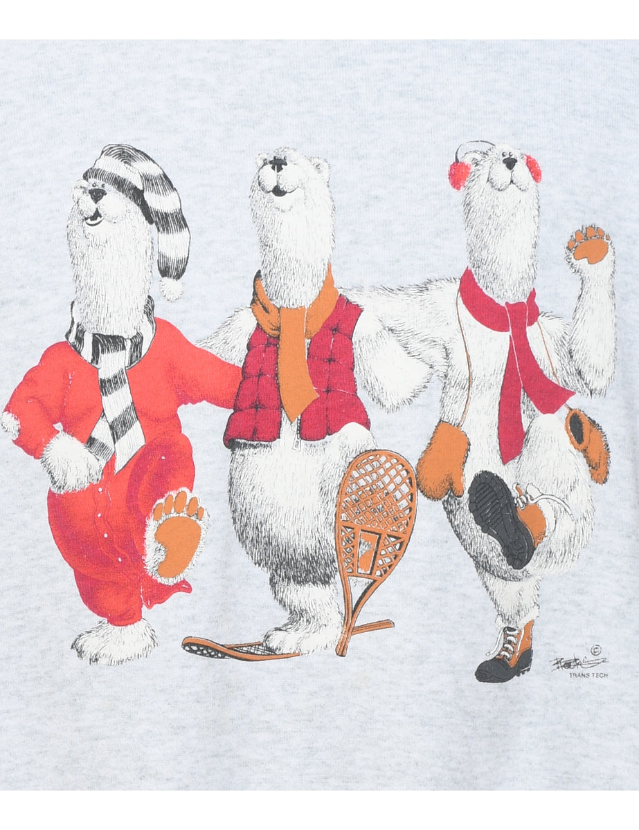 Vintage Marl Grey Polar Bear Design 1990s Cartoon Sweatshirt - L