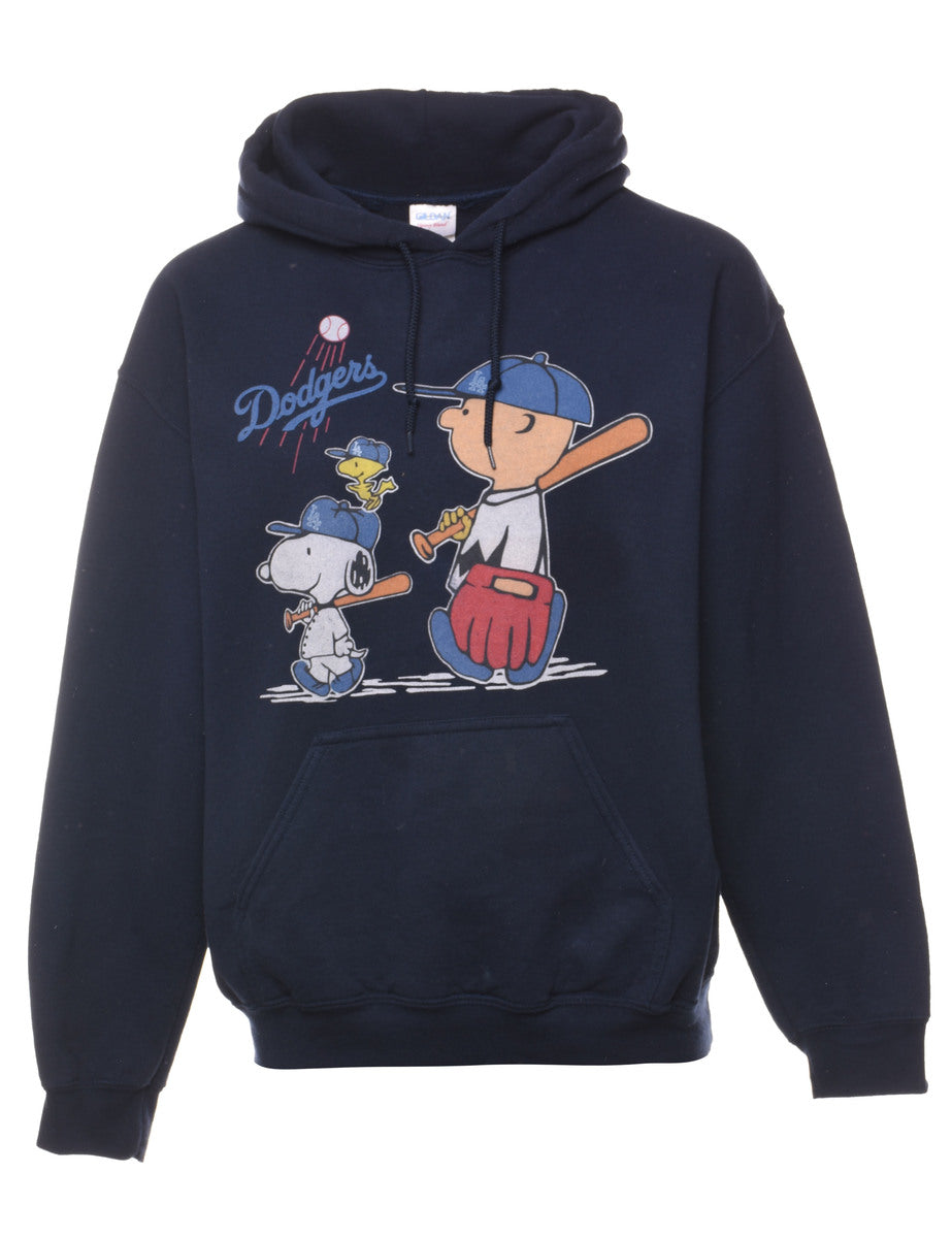 Vintage Navy Dodgers Hooded Cartoon Sweatshirt - M