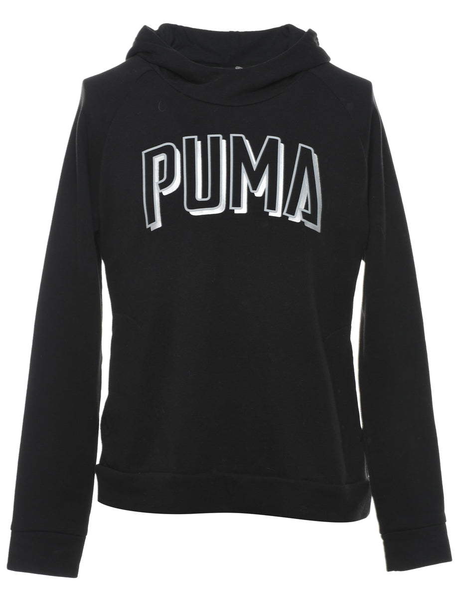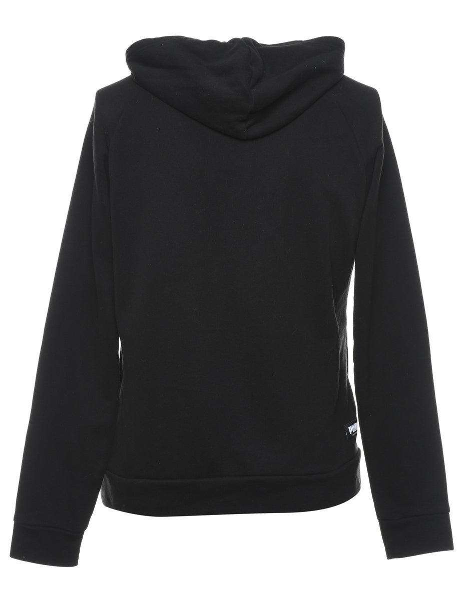 Hoodie in black with two pockets. The size label mentions XL but based on the actual measurements we consider it a size L.
