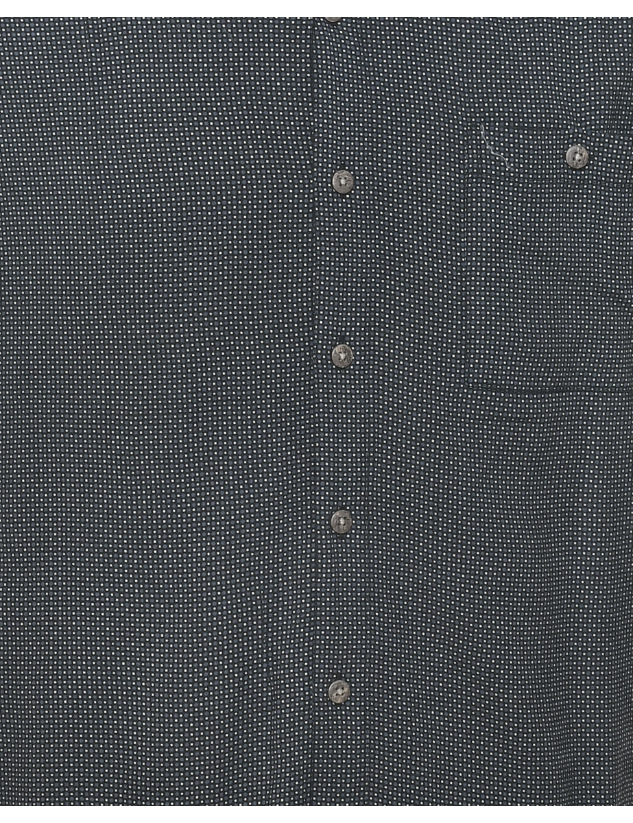 Geometric pattern 1990s shirt. Comes in dark grey with a classic collar and one pocket.