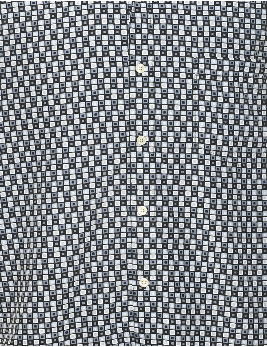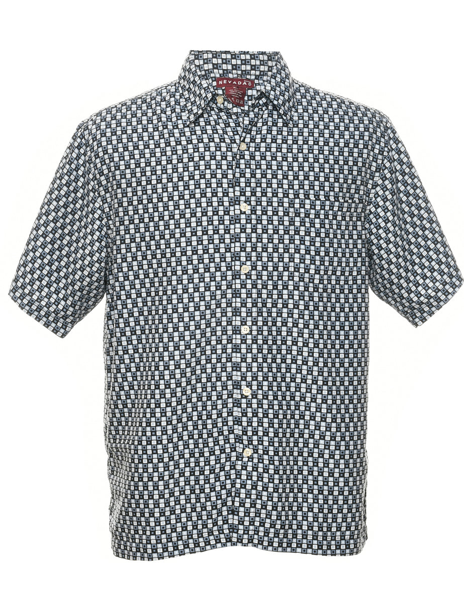 Geometric pattern shirt in multi-colour with a classic collar and one pocket. From the 1990s.