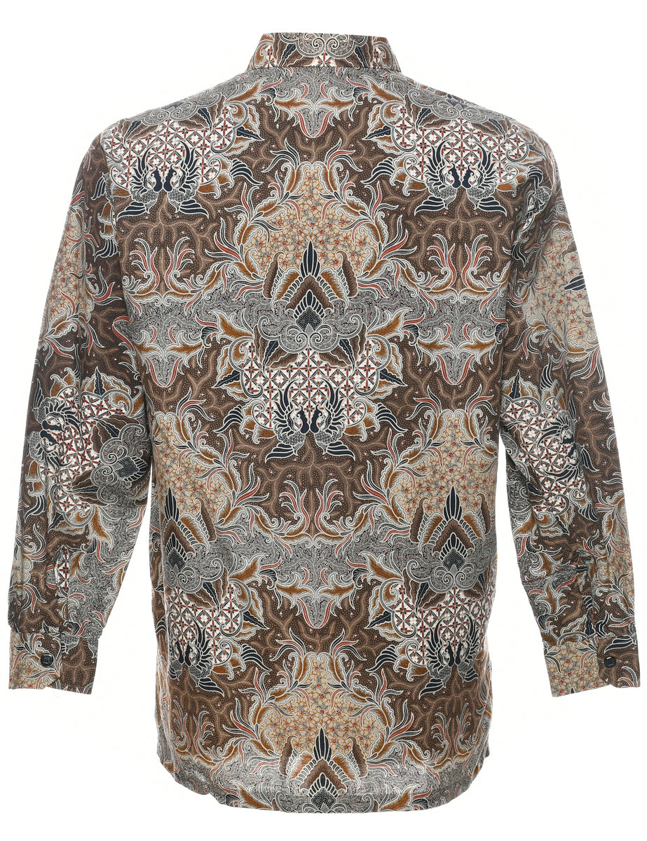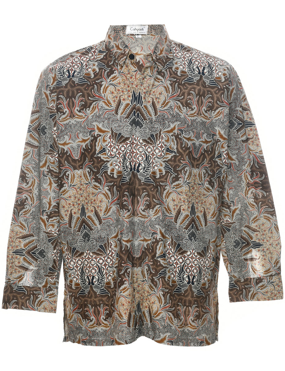 Long sleeved multi-colour 1990s shirt with a classic collar and one pocket.