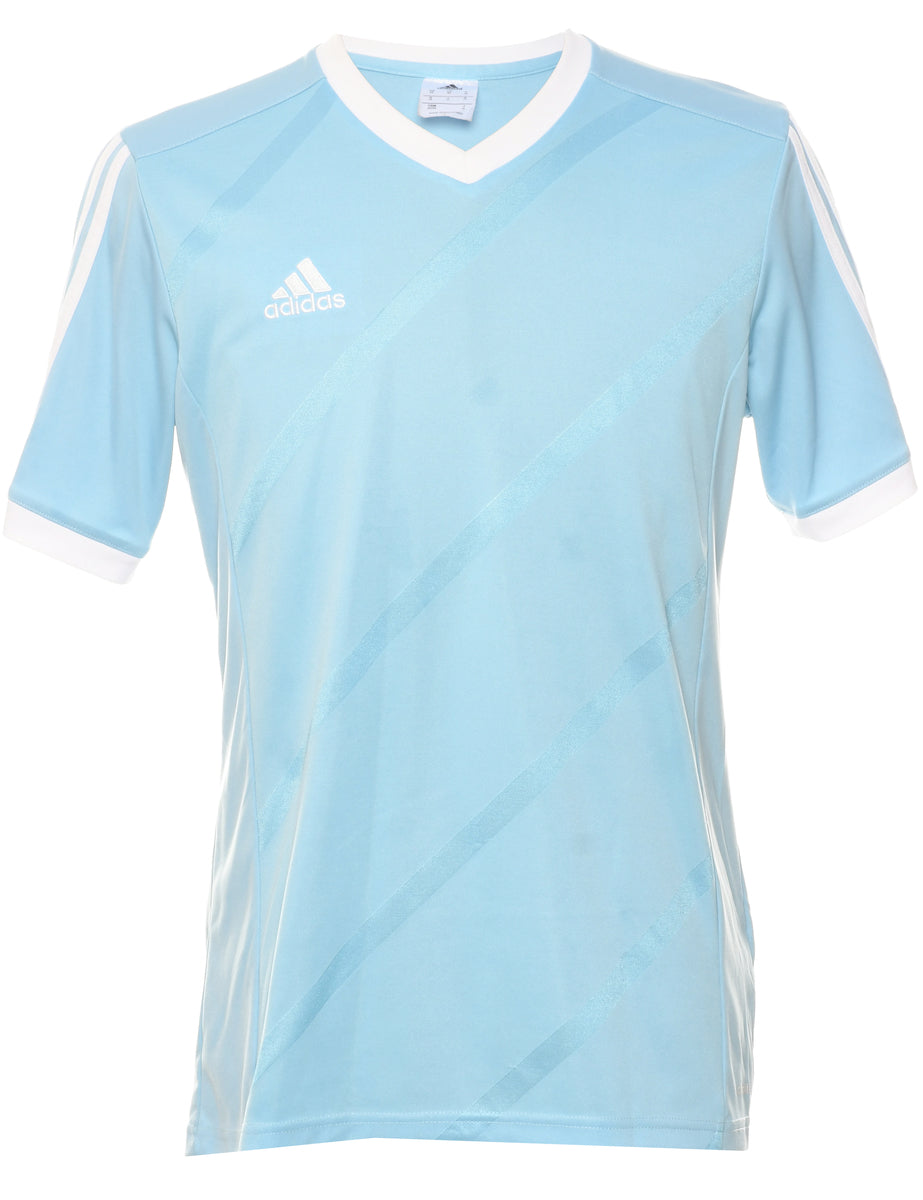 Plain t-shirt in light blue with a v-neck and contrasting trim. From the brand Adidas.