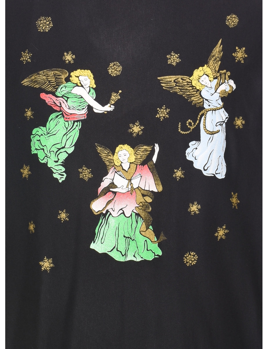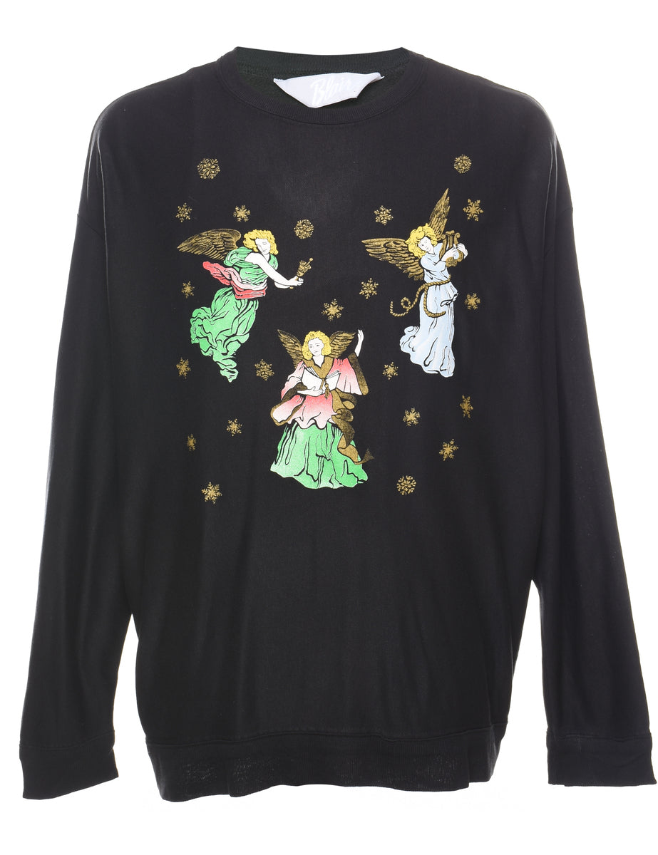 Christmas sweatshirt comes in black with a ribbed neck and cuffs.