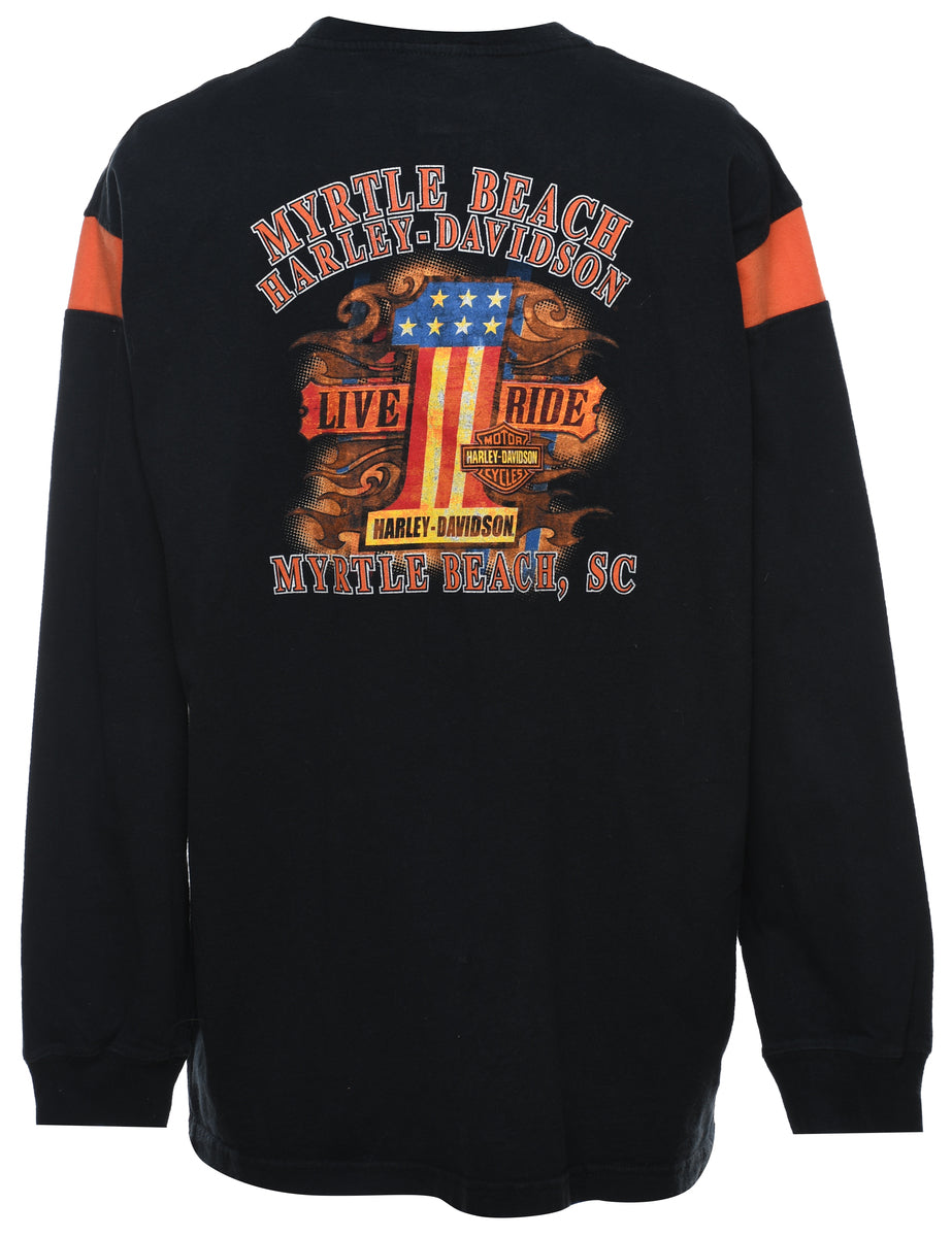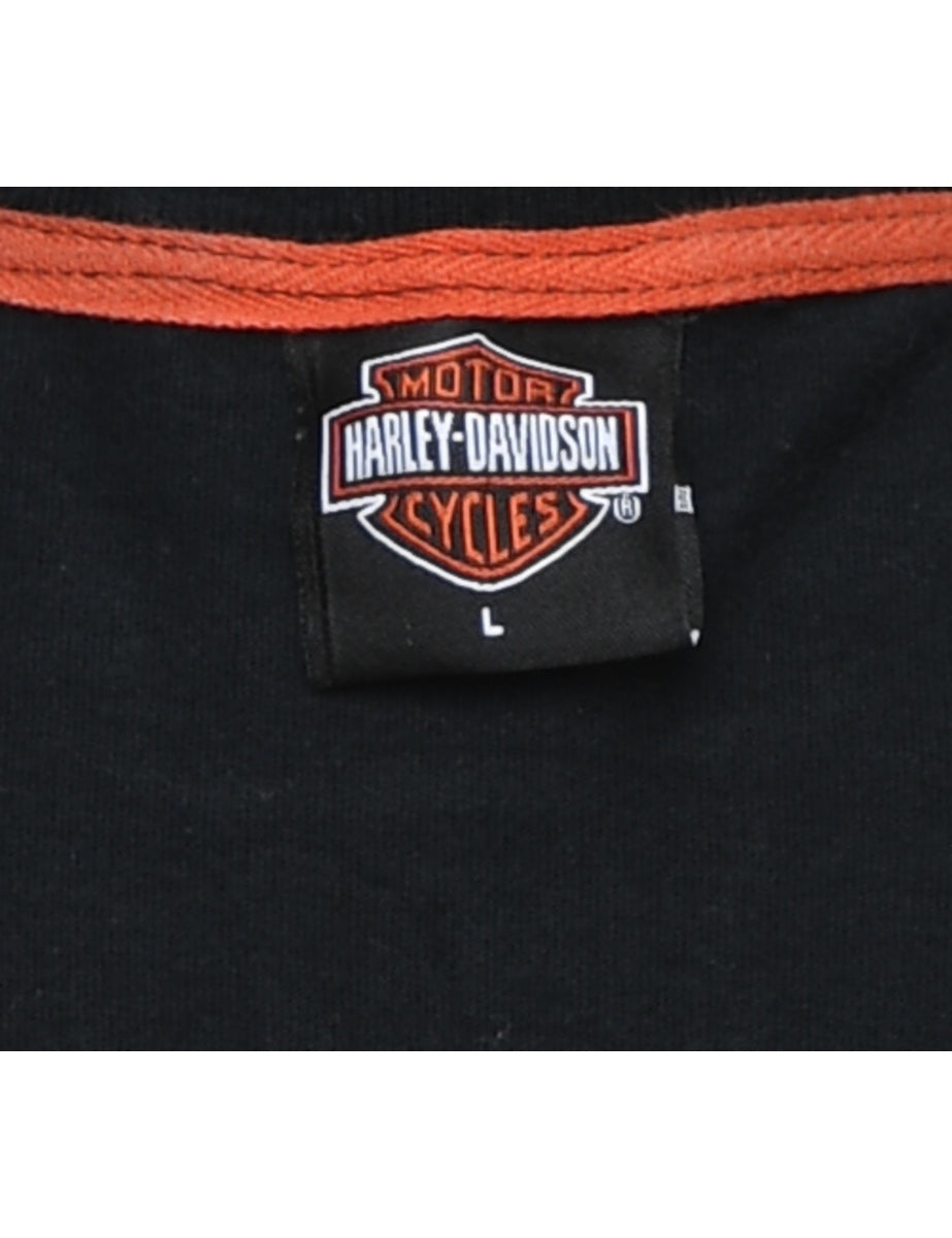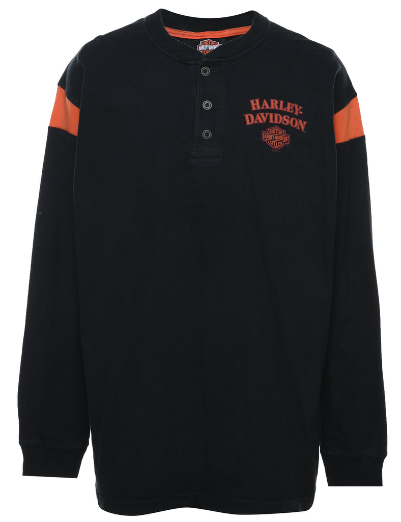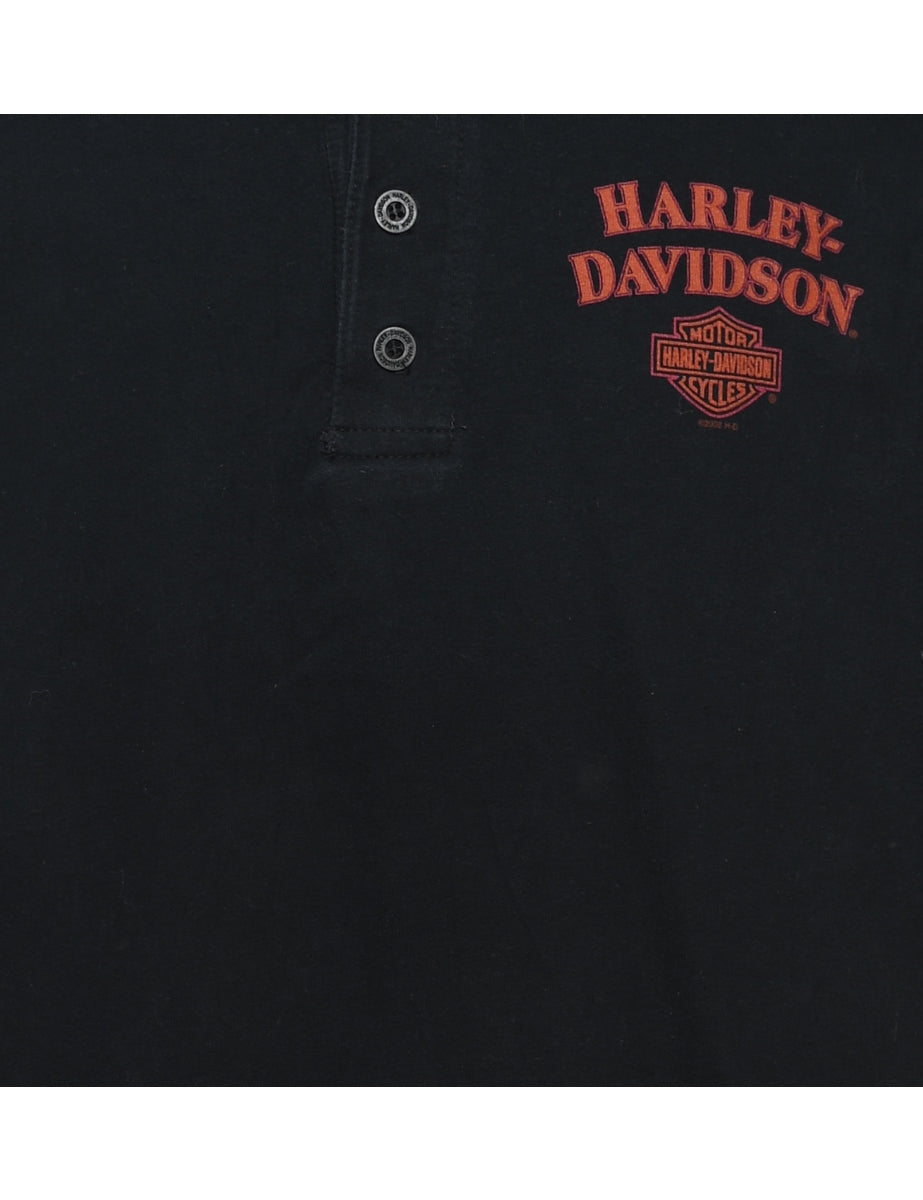 Vintage Harley Davidson Black & Orange Button Detail Printed T-shirt - L
