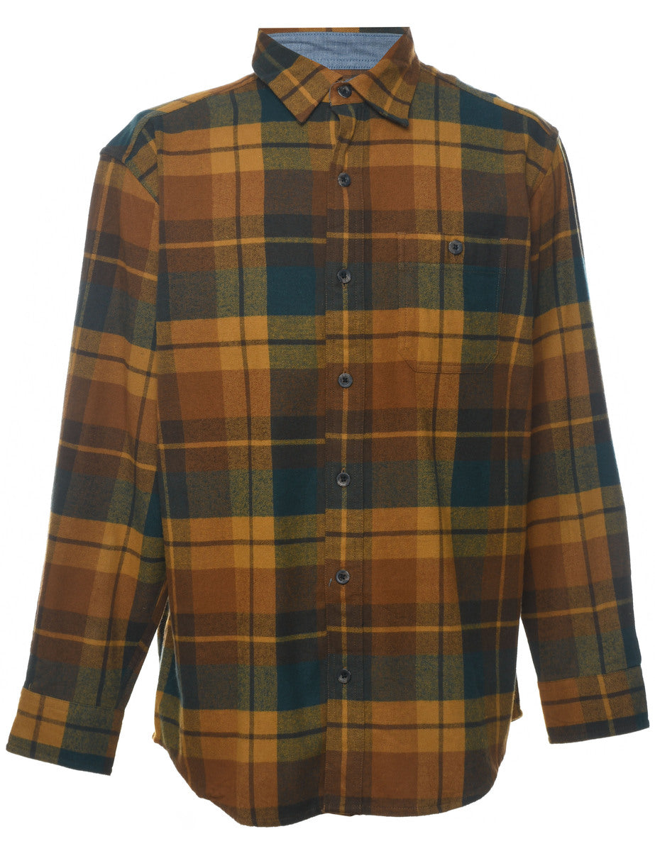 Long sleeved checked shirt in multi-colour with a classic collar and one pocket.