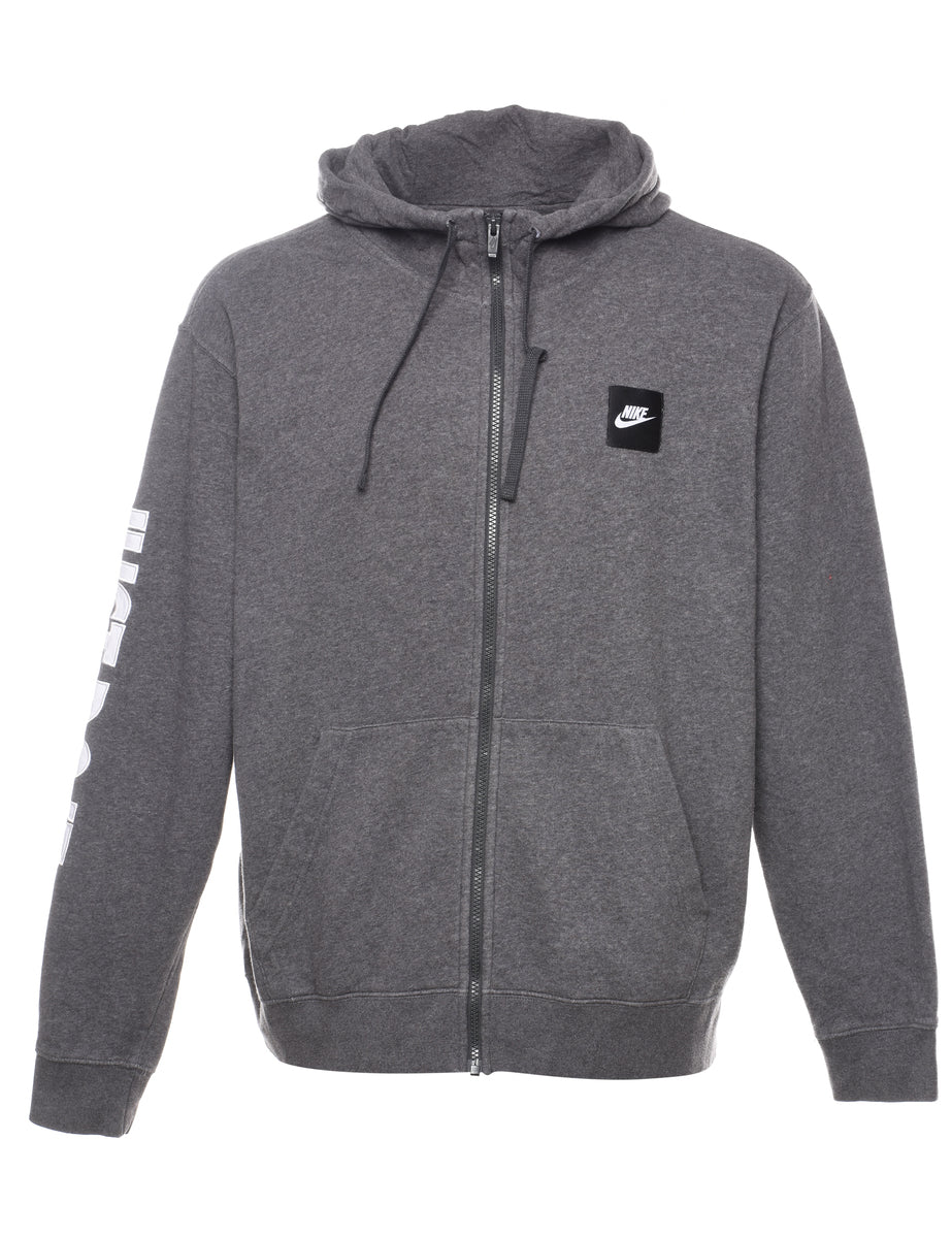 Nike hooded sweatshirt in grey with two pockets.
