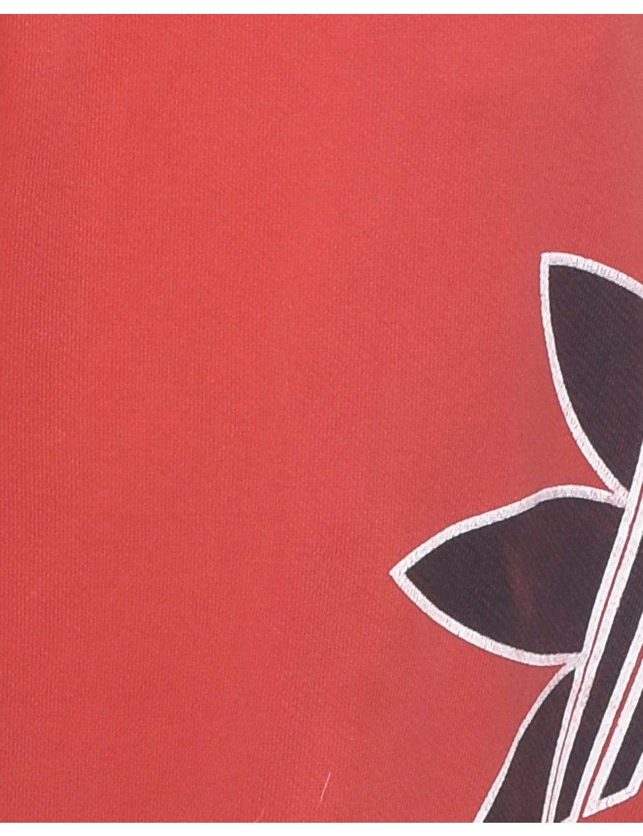 Red Adidas jogging bottoms complete with multiple pockets and a drawstring waist.