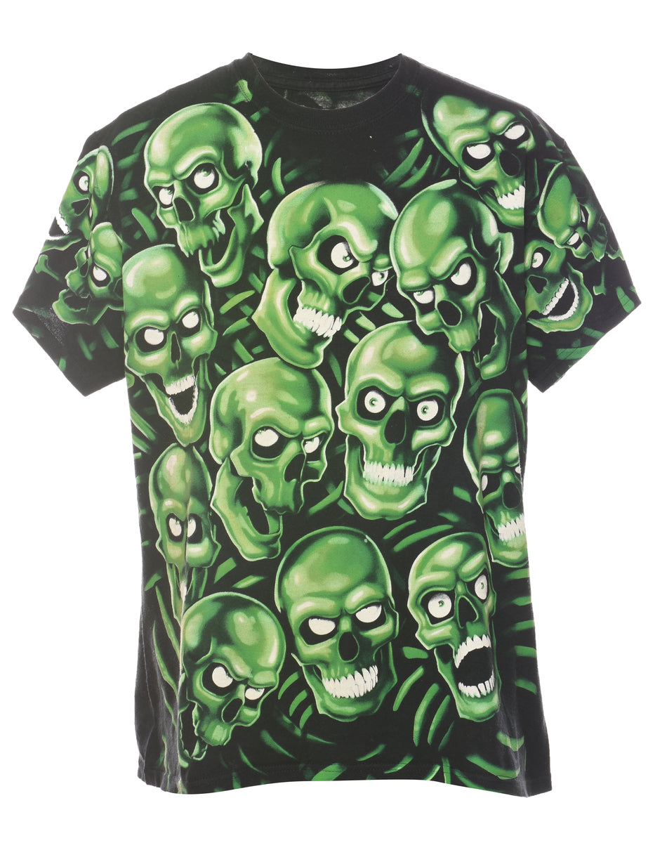 Liquid blue black & green skull print t-shirt.