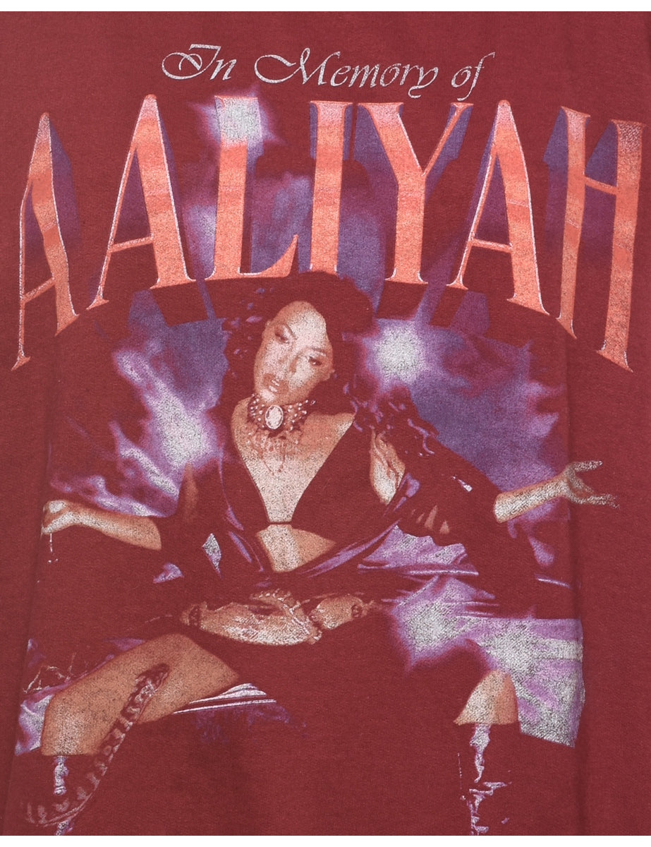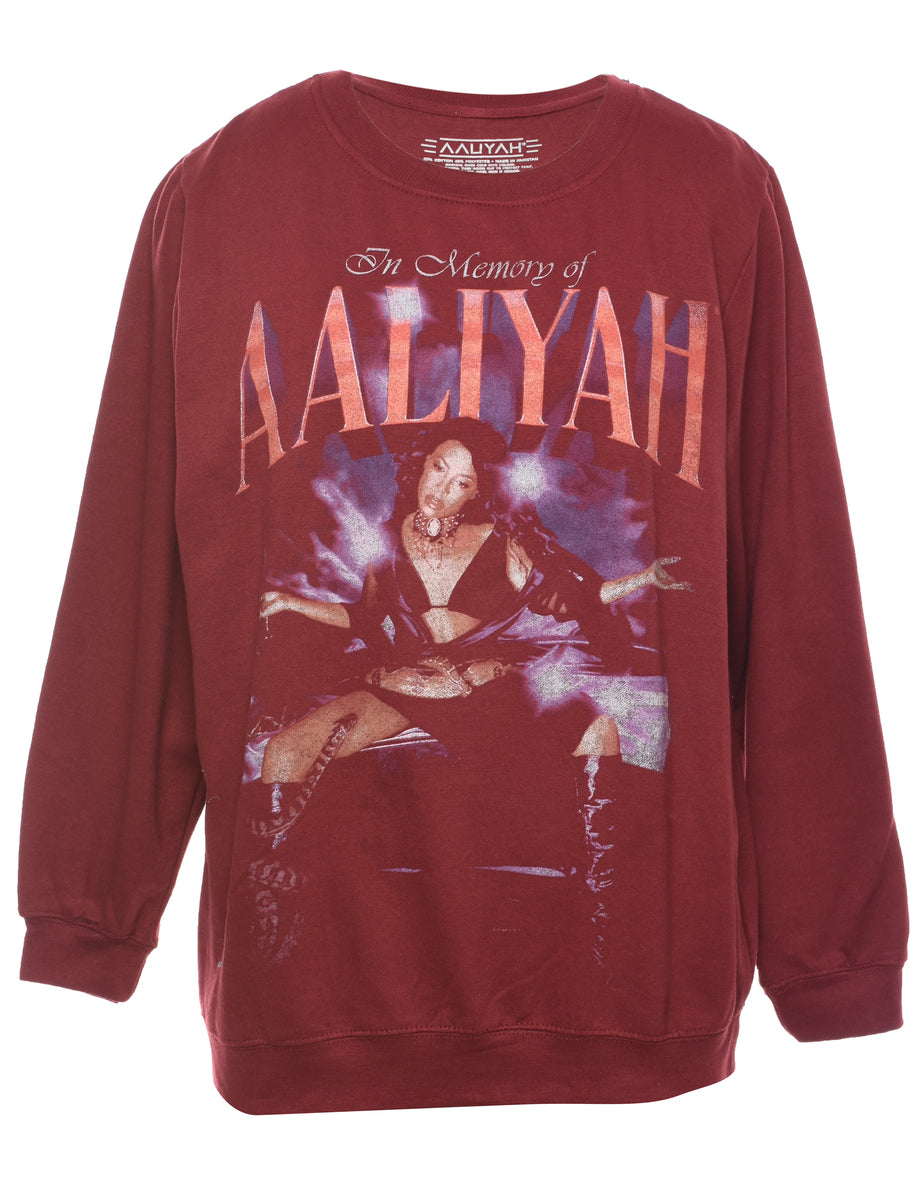 Aaliyah printed sweatshirt in maroon with a drop shoulder.