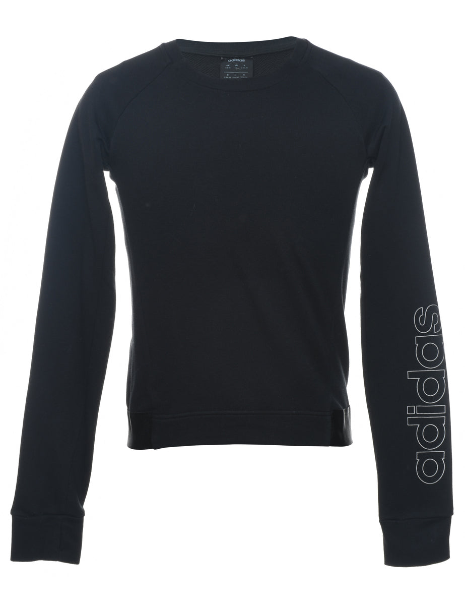 Vintage Adidas Plain Black Sweatshirt - S