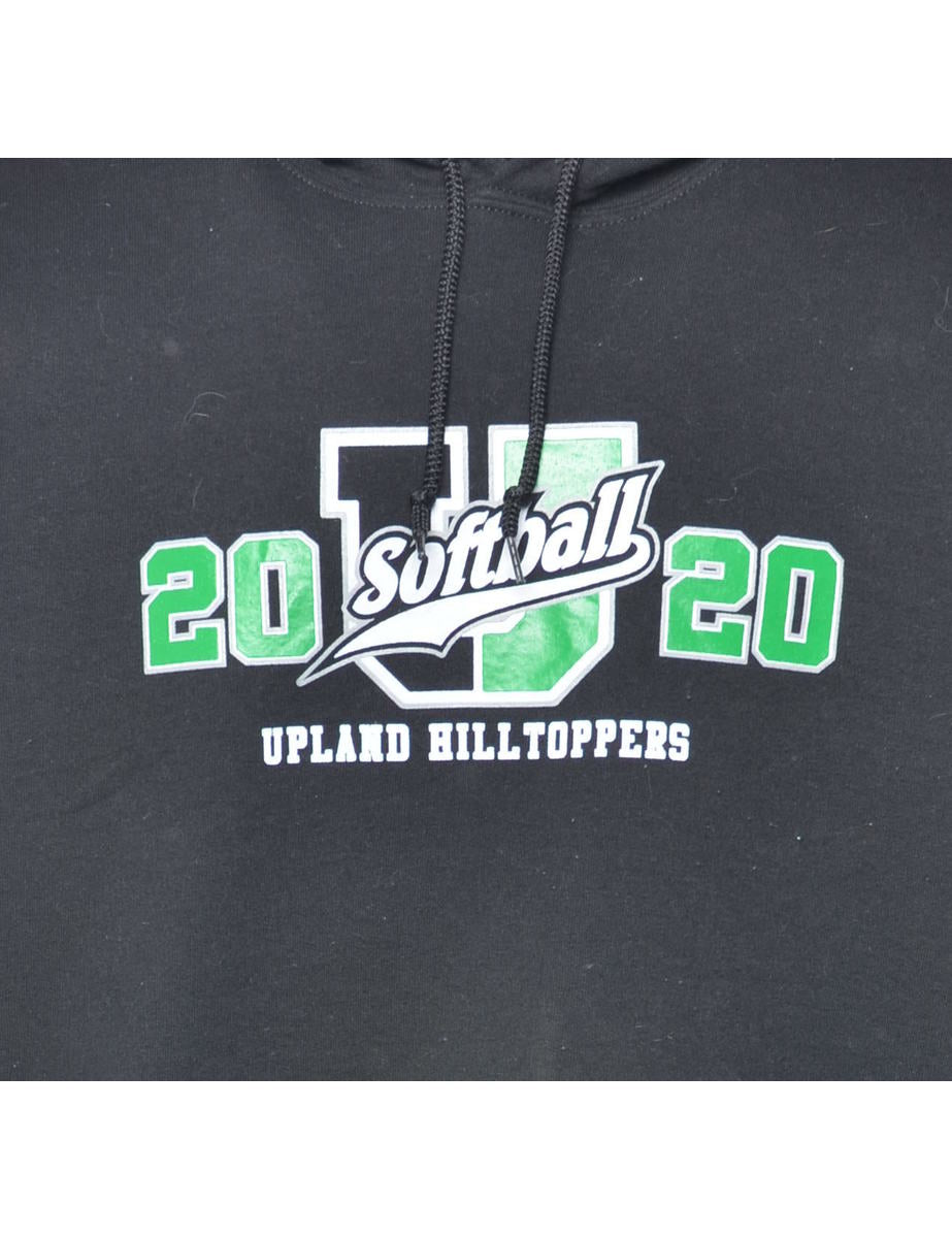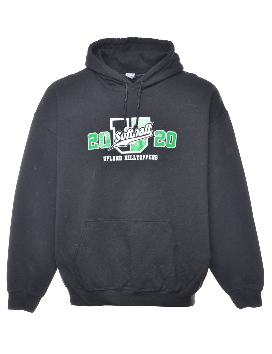 Vintage Black Softball Printed Hoodie - S