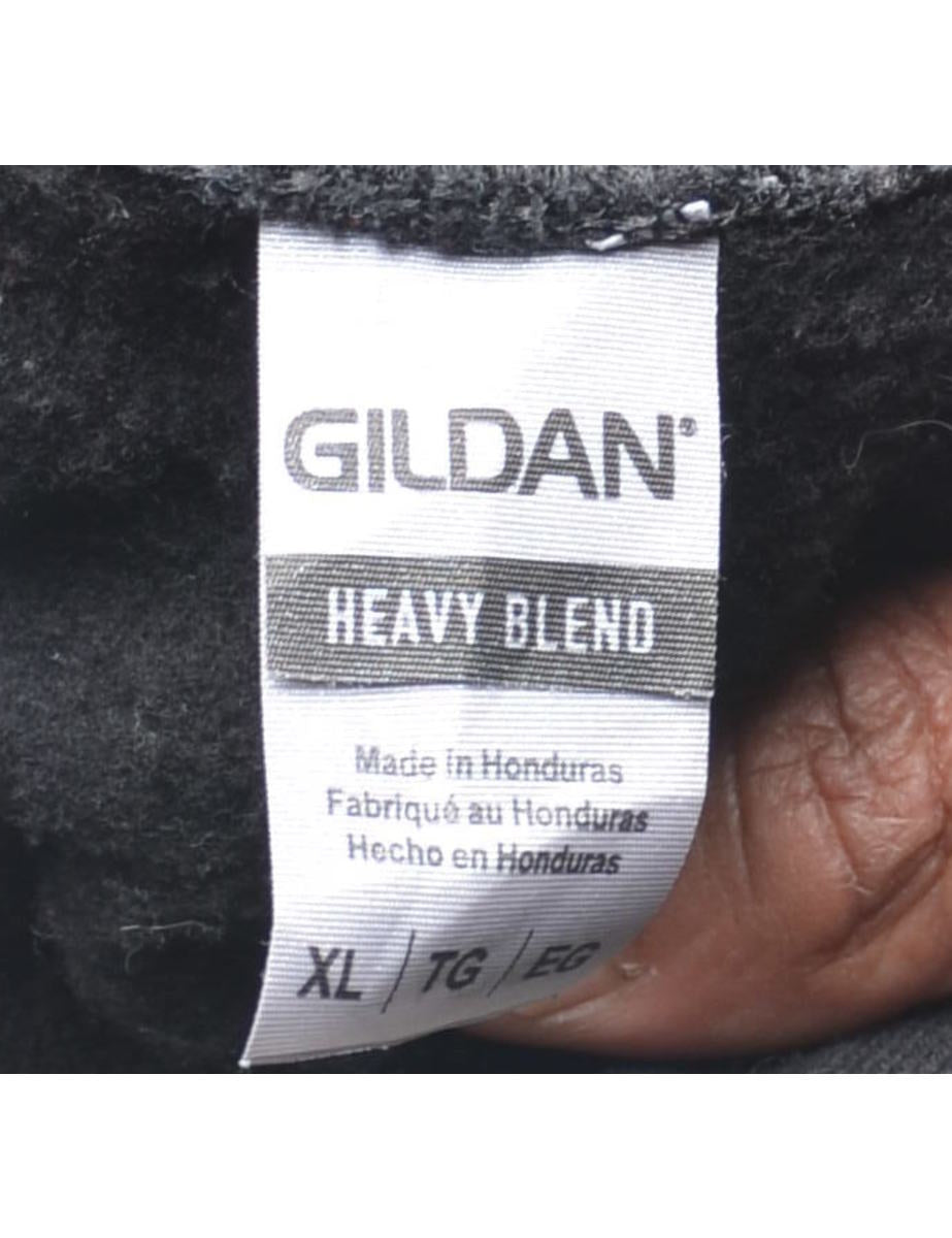 Softball printed hoodie comes in black with a pocket.The size label mentions XL but based on the actual measurements we consider it a size S.