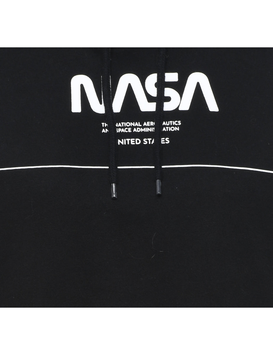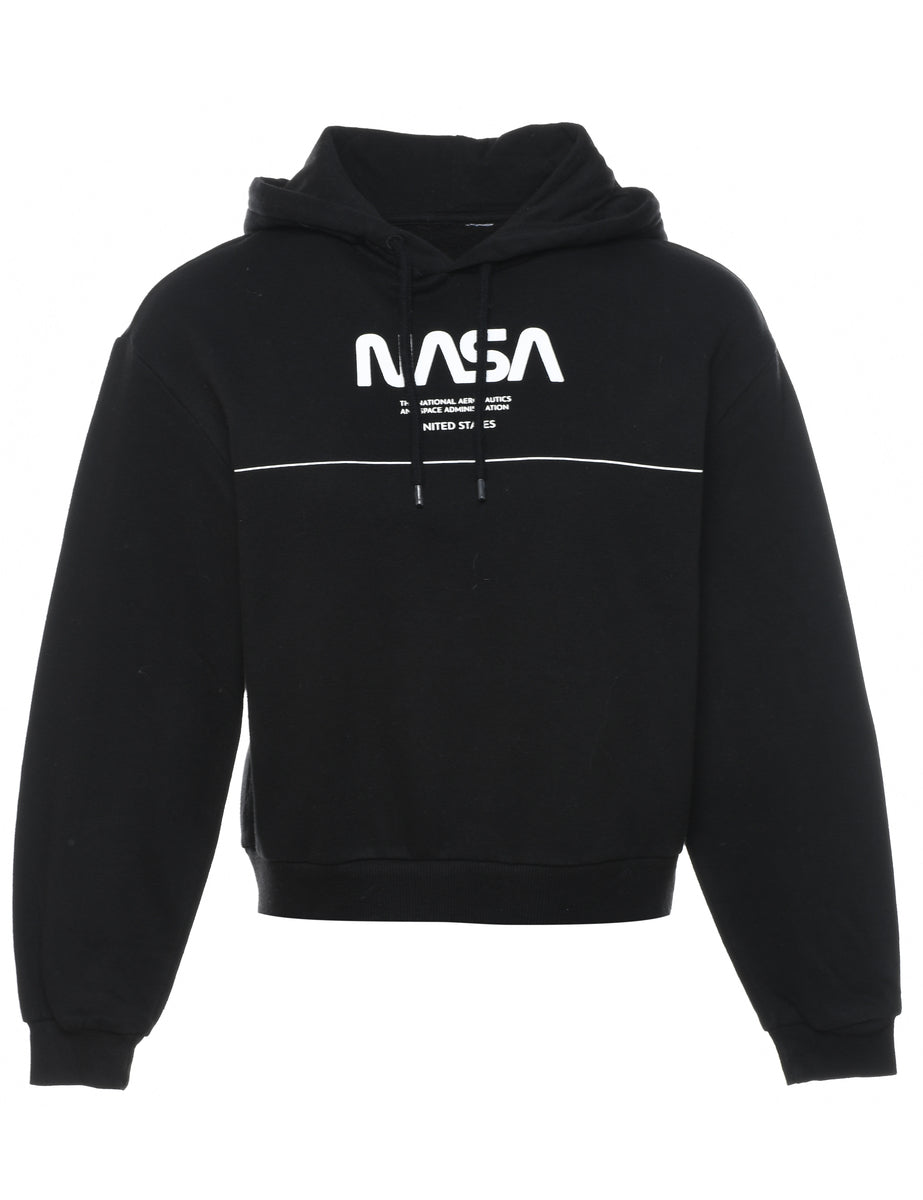 Vintage Black & White Nasa Printed Hoodie - M