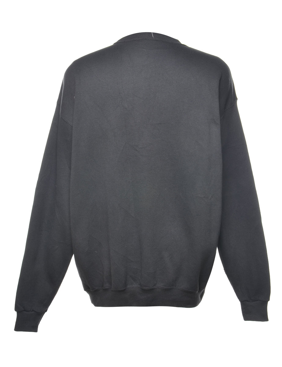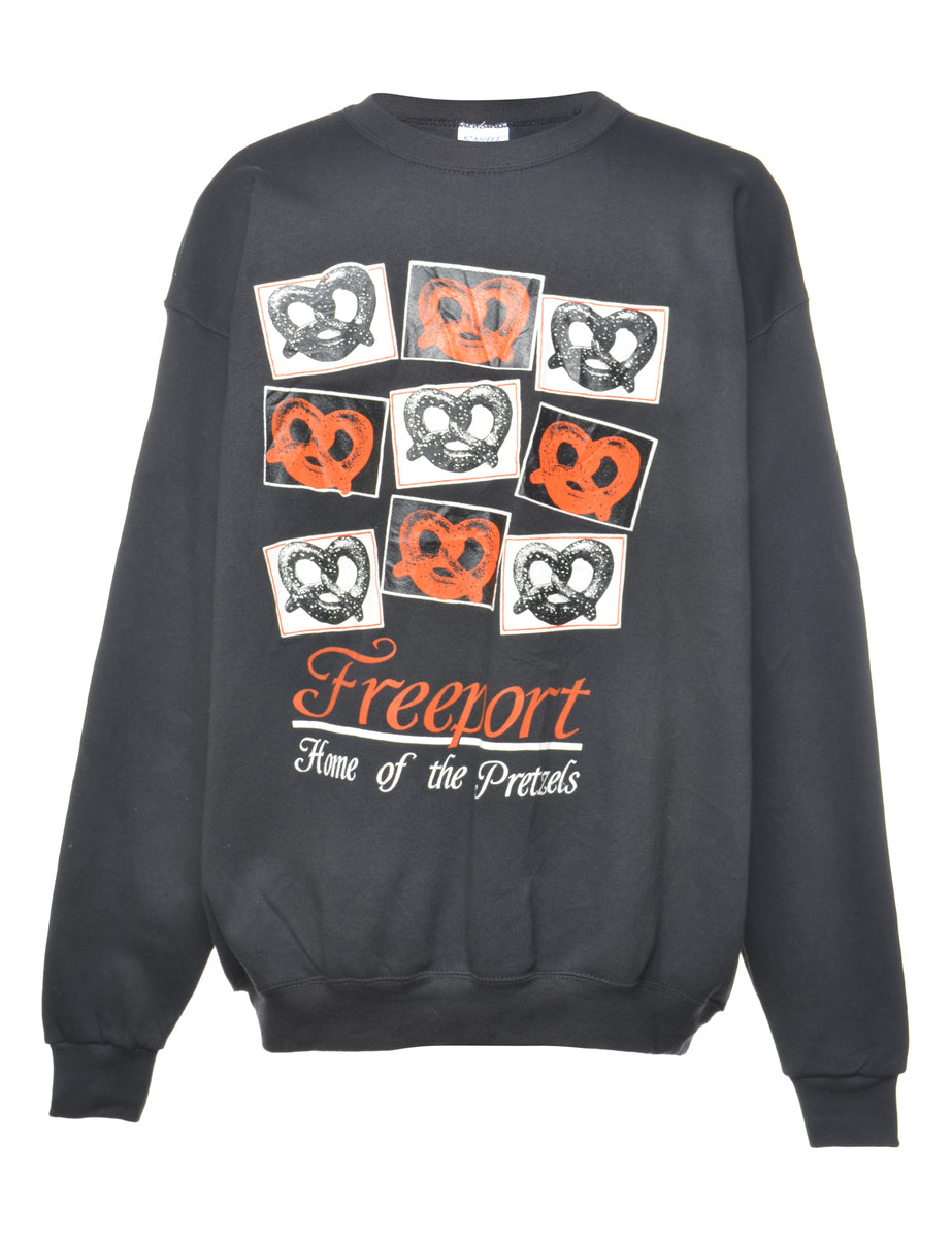 Extra long printed sweatshirt. Comes in black with a drop shoulder.