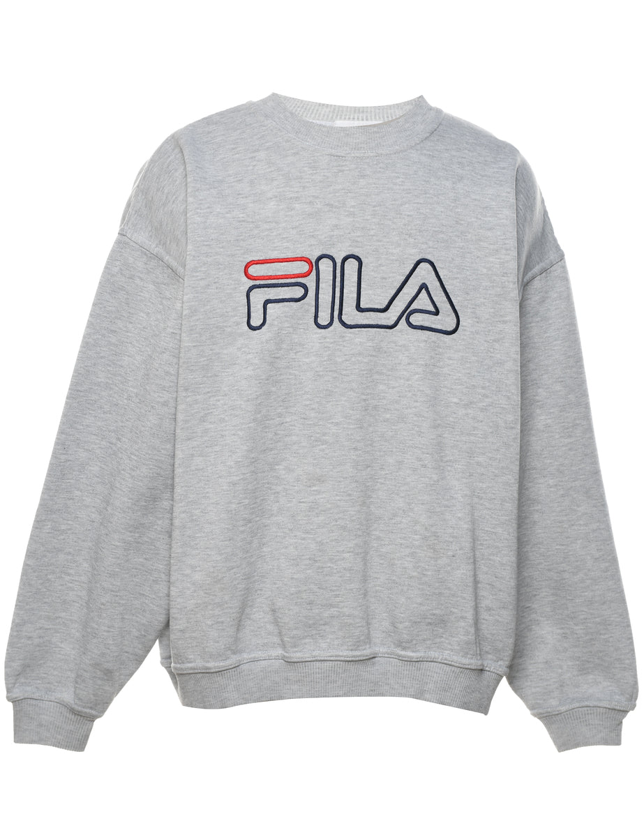 Vintage Fila Light Grey Embroidered Sweatshirt - L