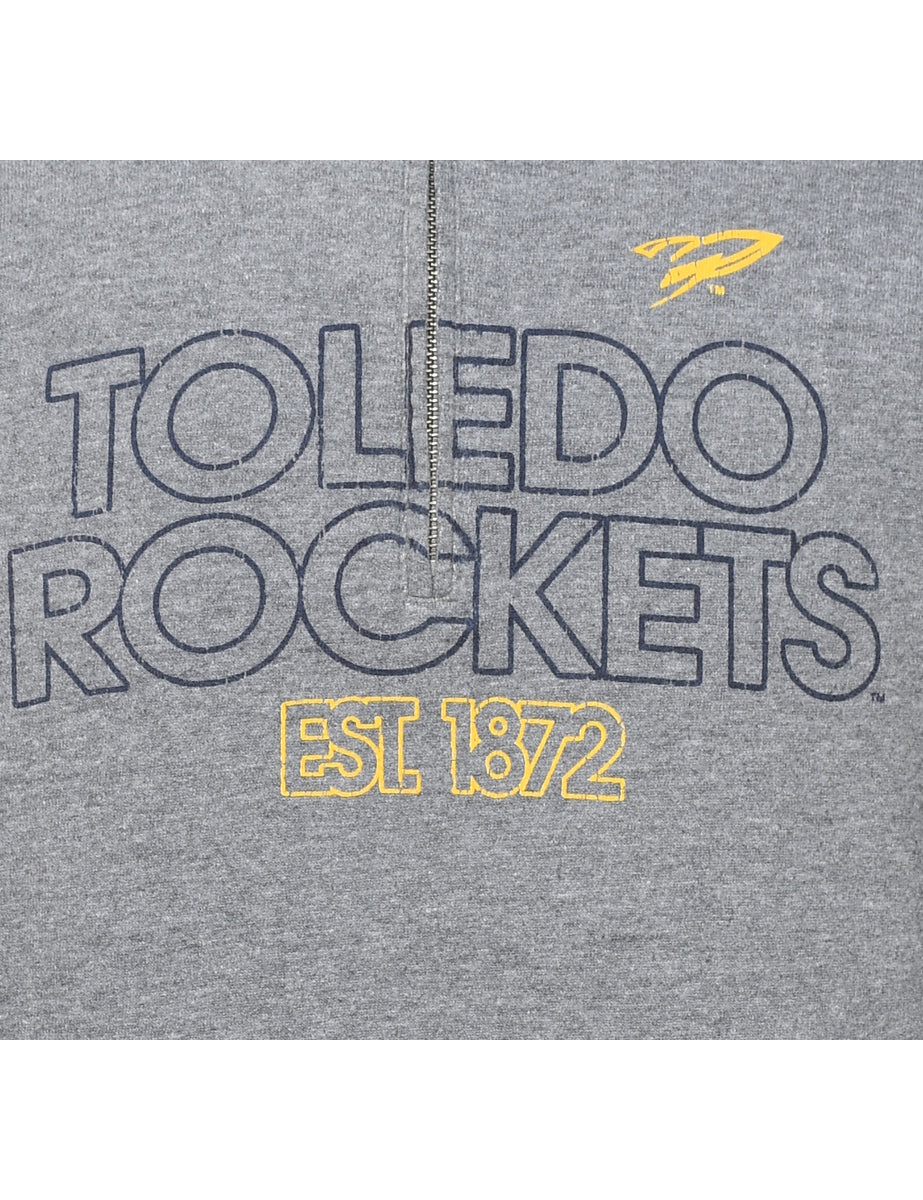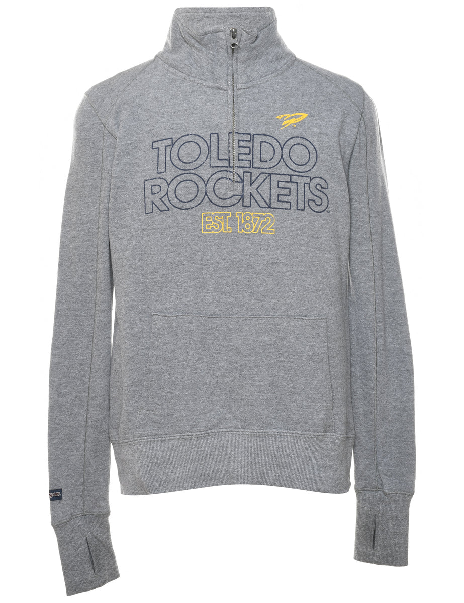 Jansport quarter zip toledo rockies printed sweatshirt. Comes in grey.
