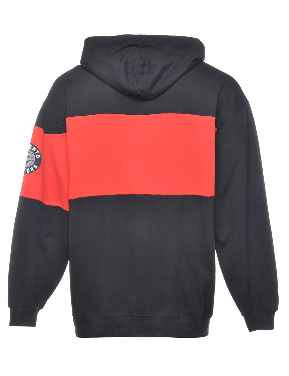 Nba hooded sports sweatshirt in black & red with a drawstring neck and contrasting panels.
