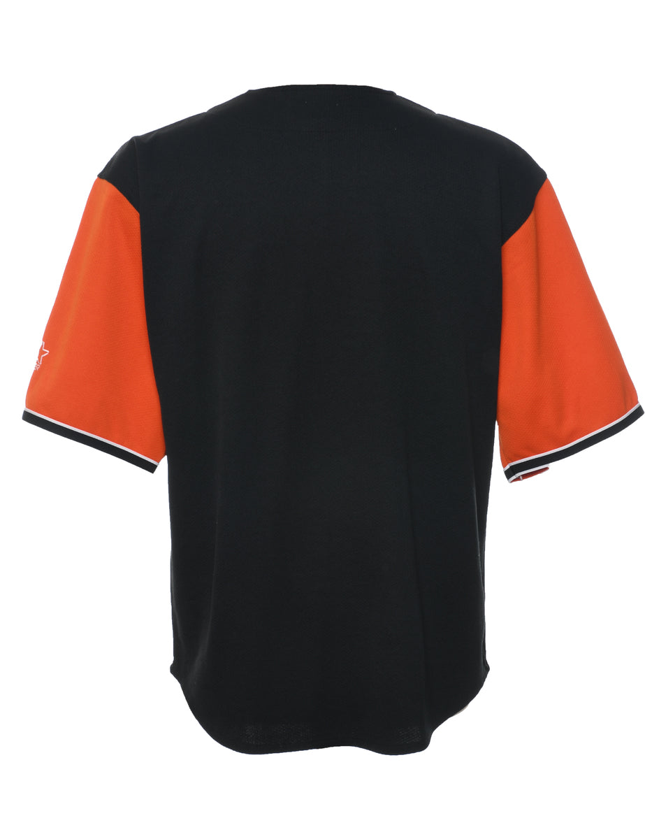 Starter mlb sports t-shirt comes in orange & black with a v-neck.