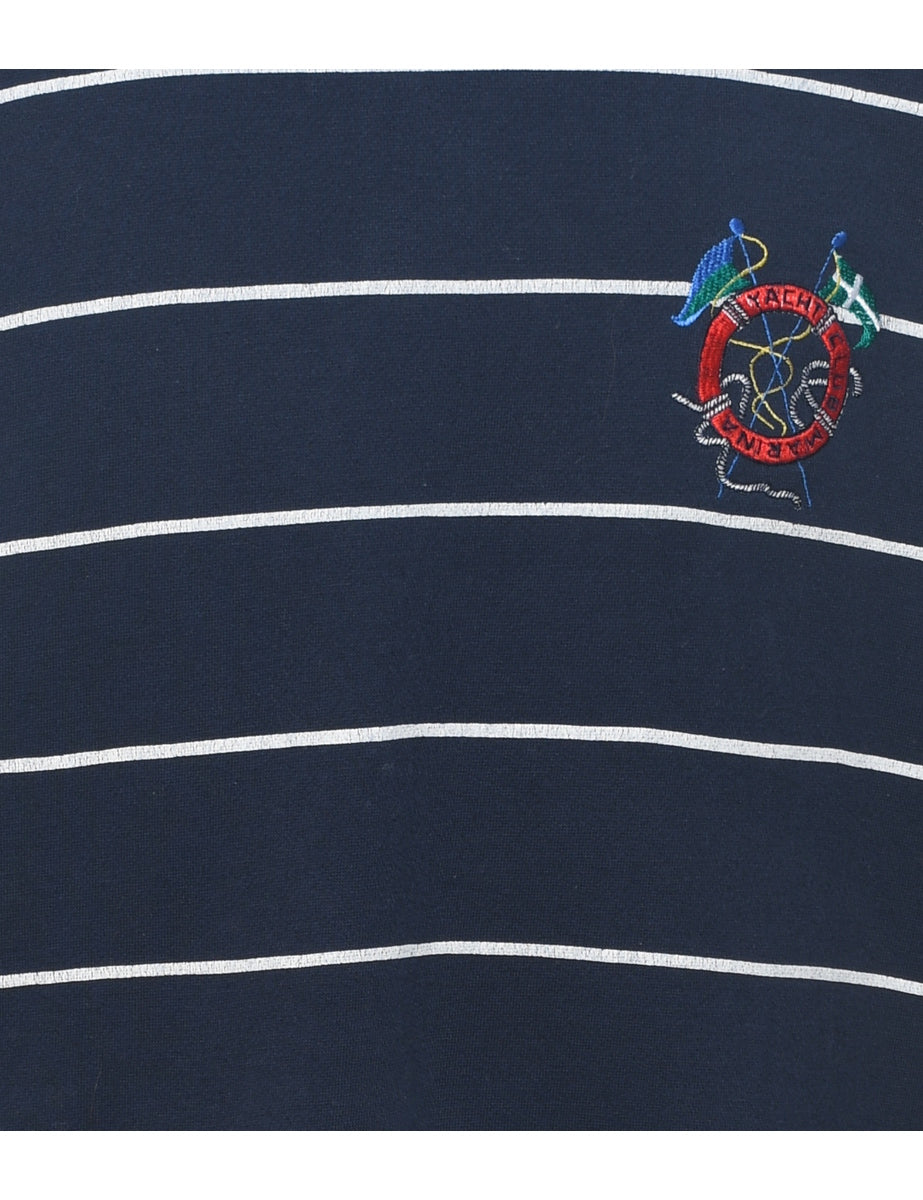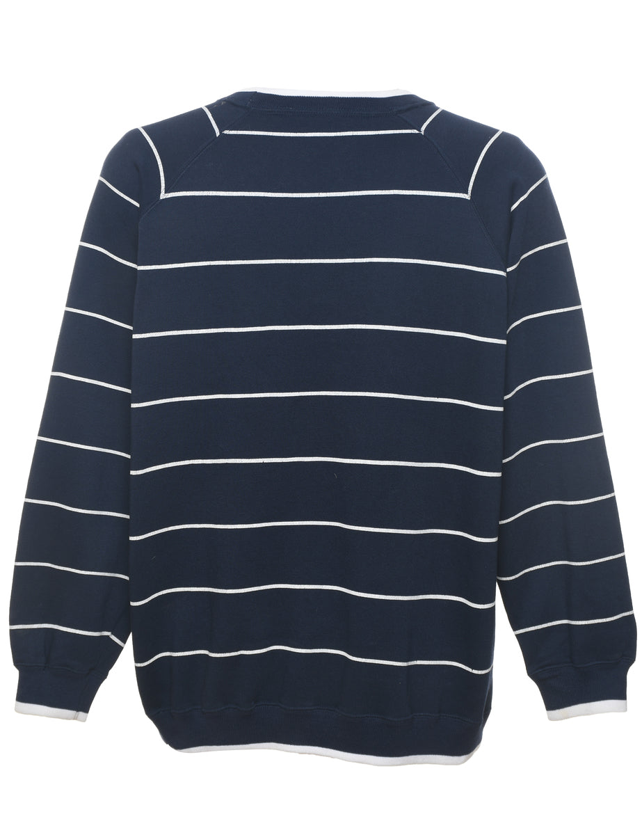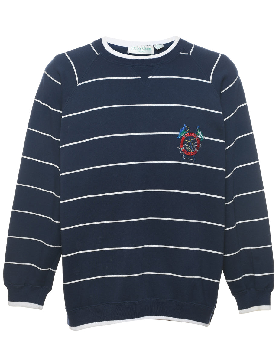 Vintage Striped Navy & White Embroidered Sweatshirt - L