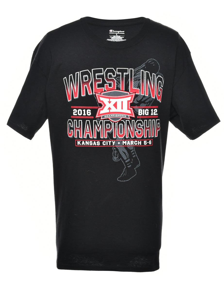 Champion Kansas city t-shirt in black with wrestling print. From the 2000s.