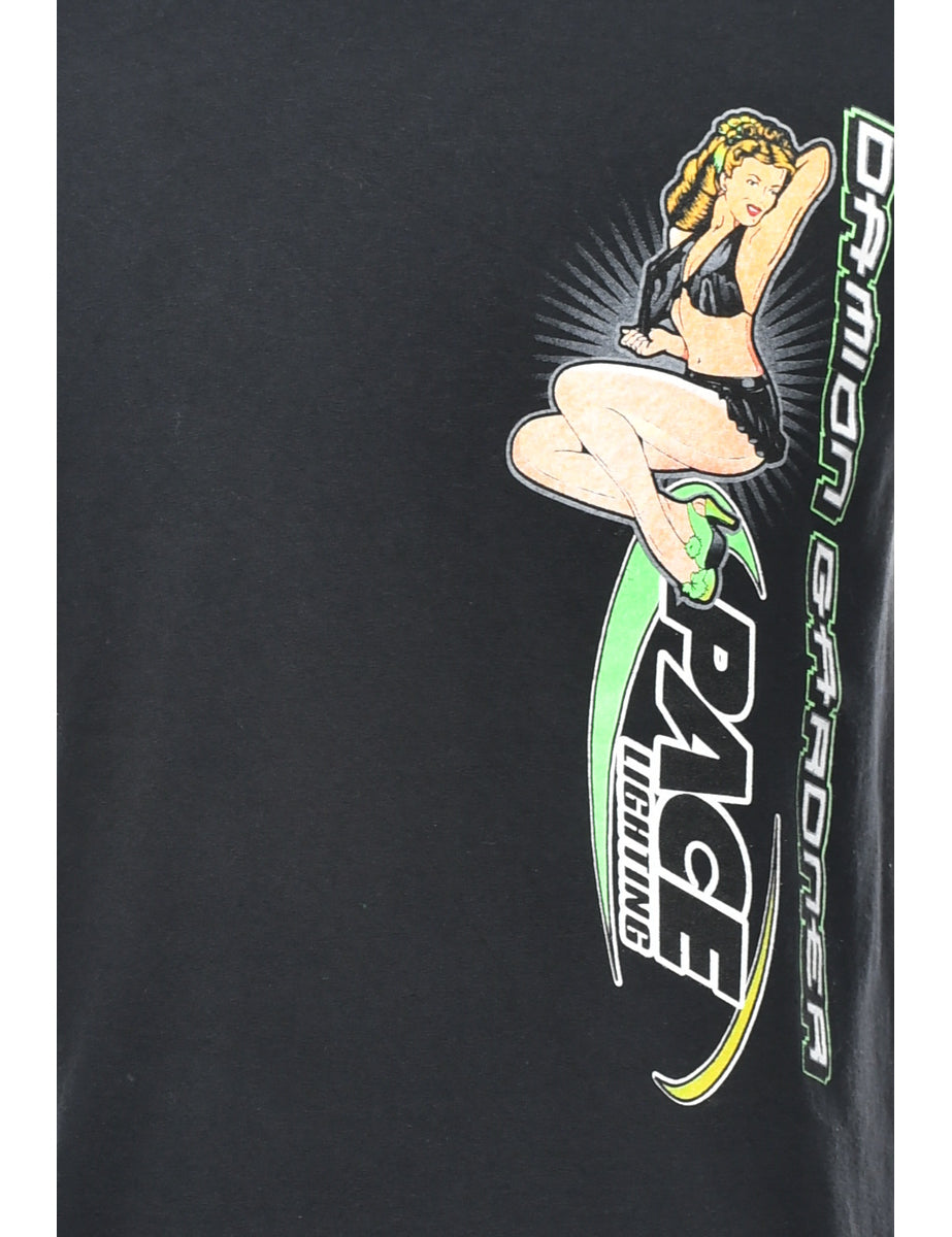 Vintage Black Car Racing Printed T-shirt - M