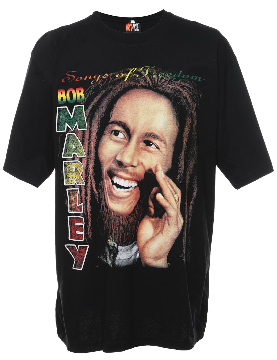 Bob marley printed t-shirt comes in black.