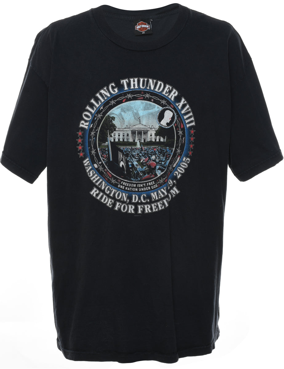 Vintage Classic Black Harley Davidson Printed T-shirt - XXL