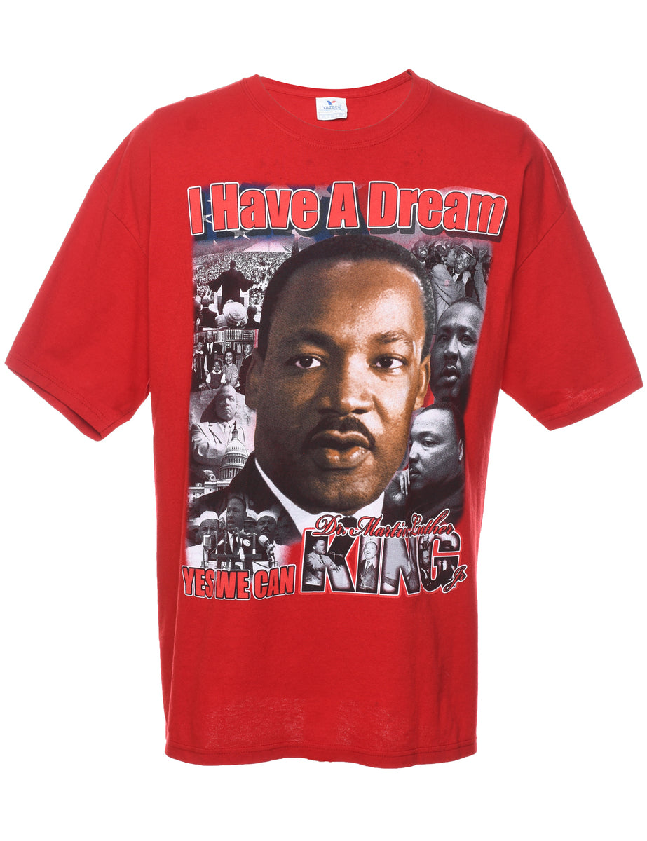 Vintage Martin Luther King Red Printed T-shirt - XXL