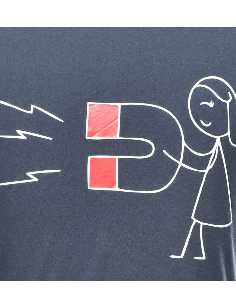 Vintage Navy Printed T-shirt - S