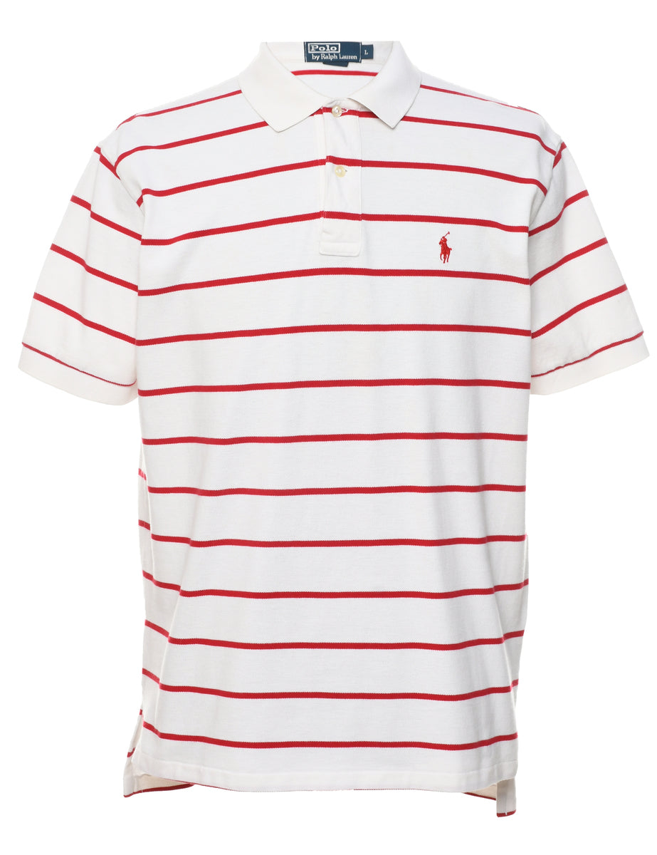 Ralph Lauren striped polo shirt comes in white with a drop shoulder.