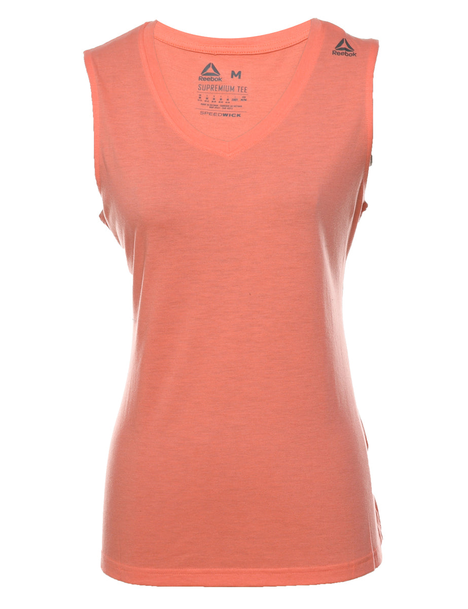 Reebok sleeveless vest in coral with a v-neck.