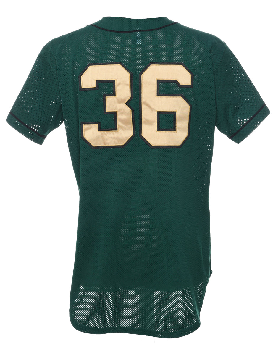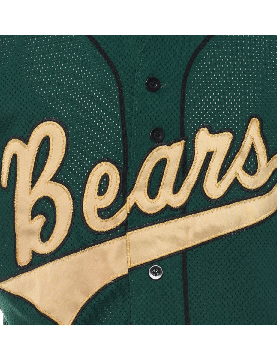 Button front bears printed t-shirt comes in dark green with a v-neck.