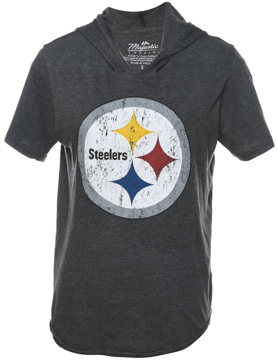 Dark grey NFL Steelers printed t-shirt with a hood.