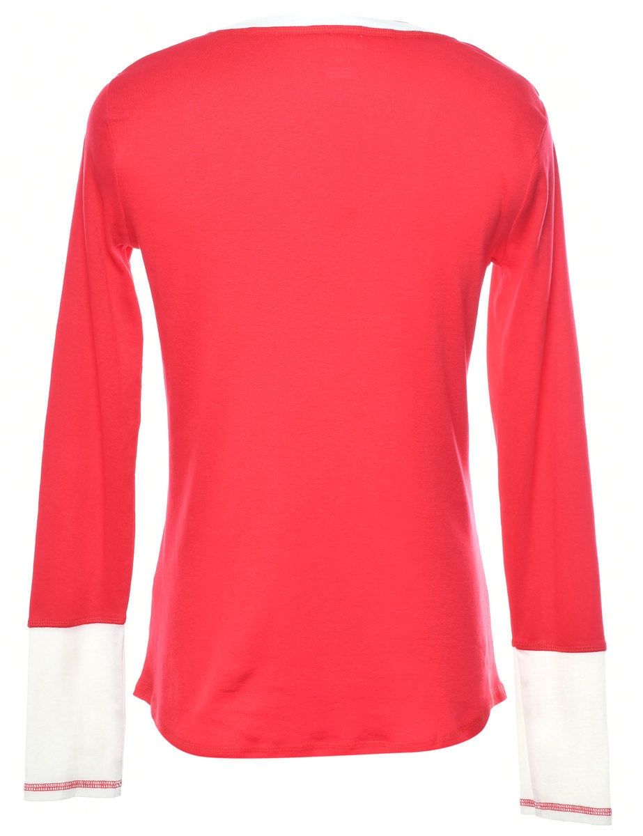 Plain t-shirt in red with a button front neck. From the brand Tommy Hilfiger.