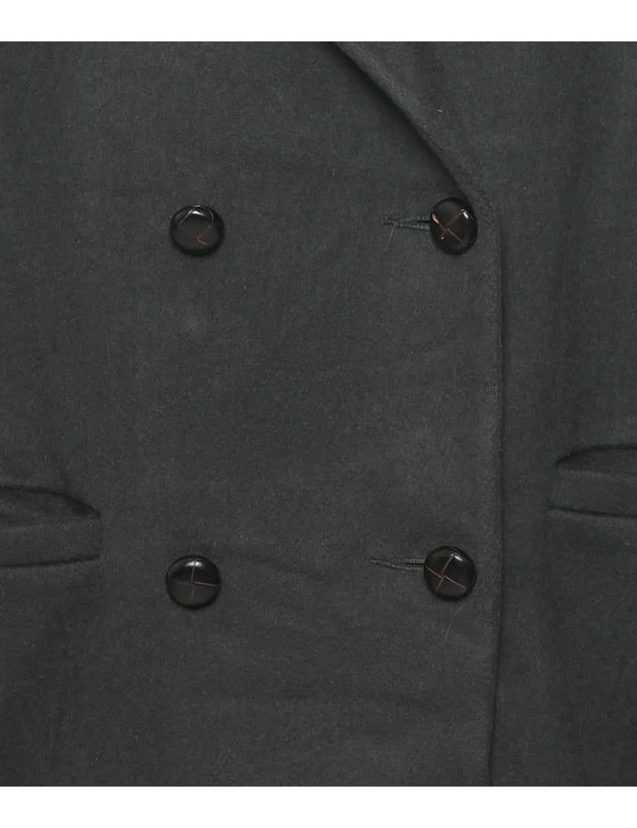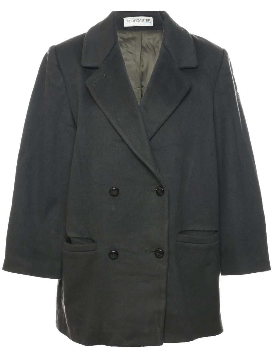 Double breasted dark green peacoat with a revere front and built in shoulder pads. Please note, the colour of the actual garment is slightly brighter than the image.