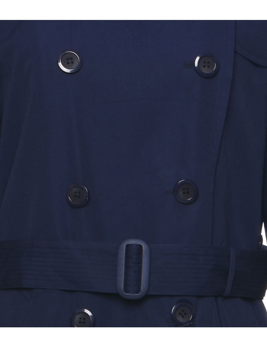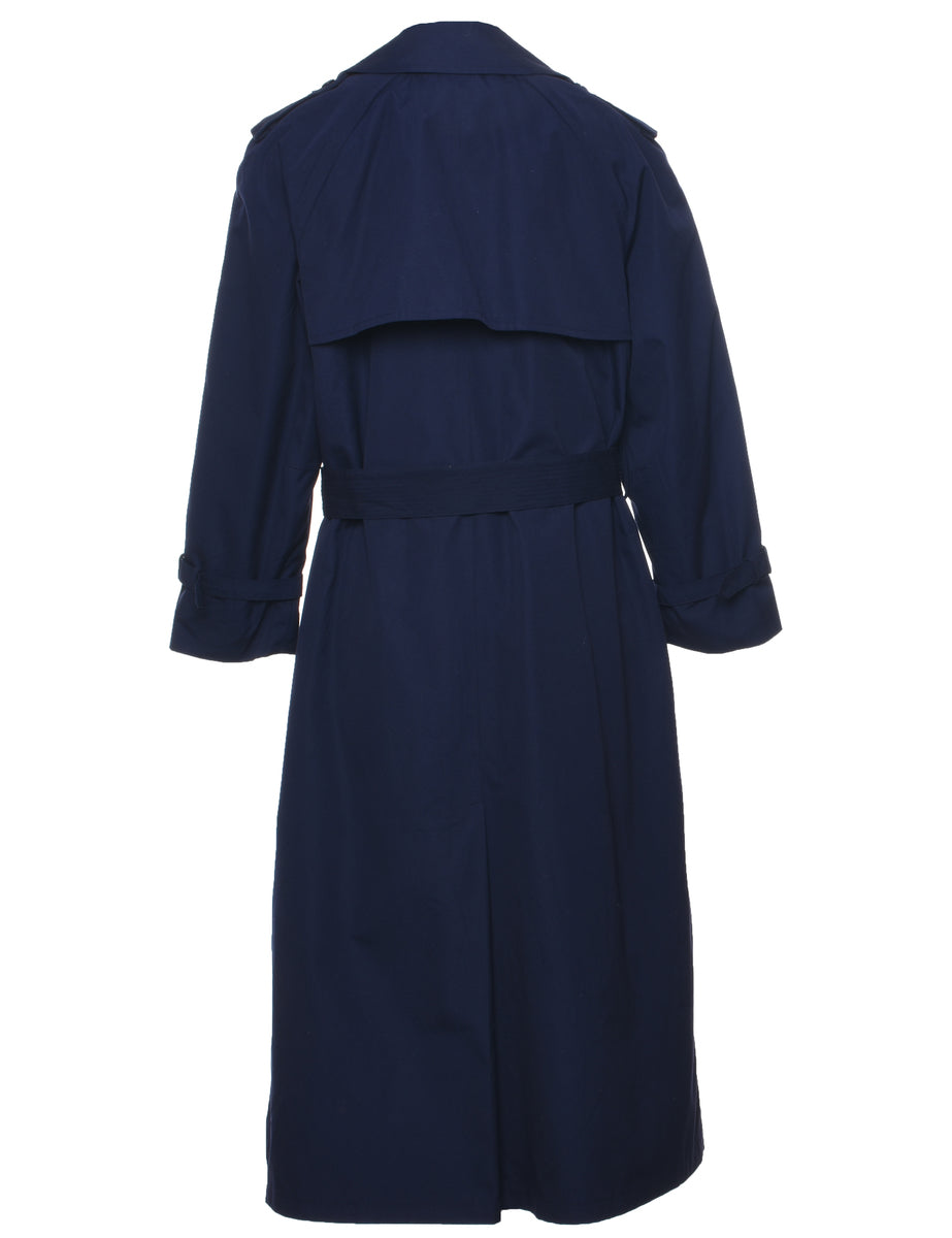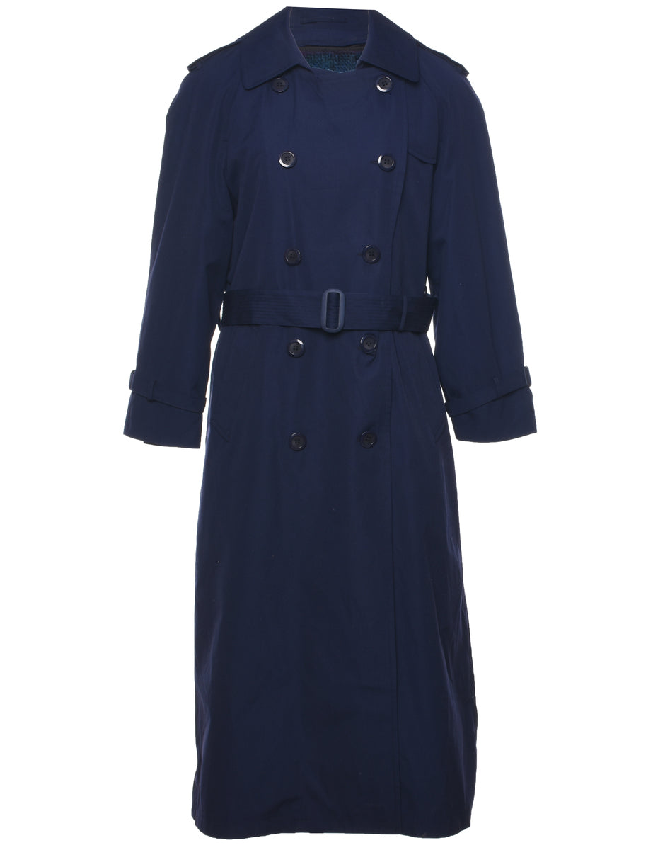 Double breasted trench coat in navy with wool lining and epaulettes.