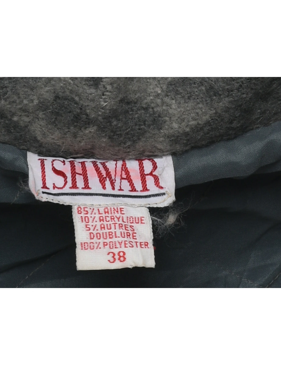 Hooded duffle coat with aztec print. Comes in grey with multiple pockets. The size label mentions 38 but based on the actual measurements we consider it a size 42.
