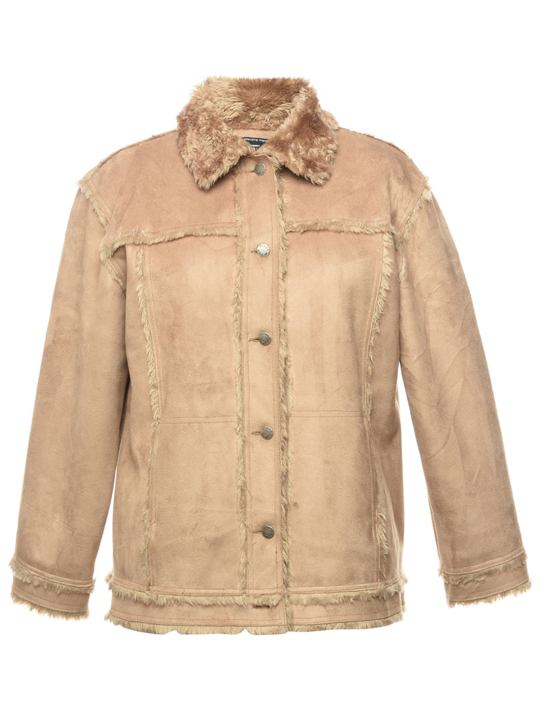 Vintage Brown Faux Fur Lined Coat - XL