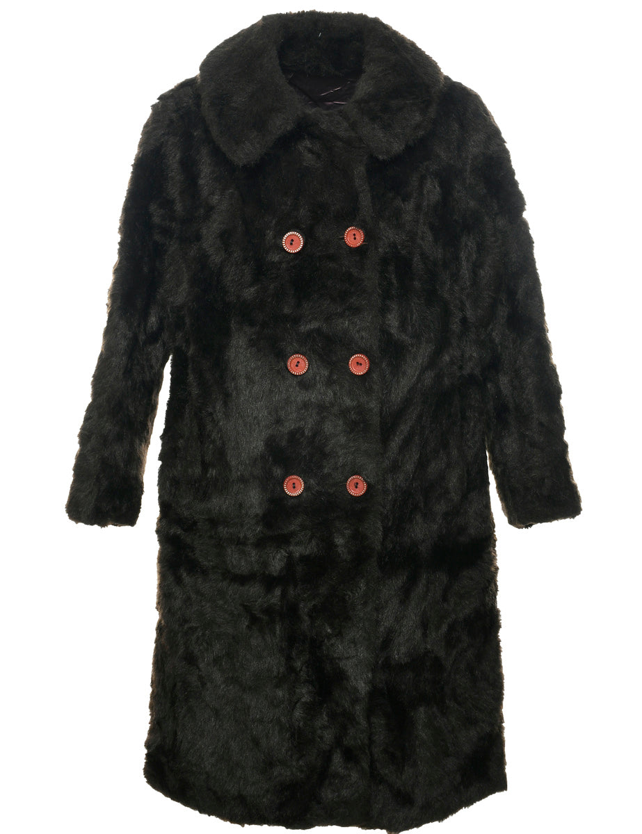 Vintage Dark Brown Faux Fur Coat - L