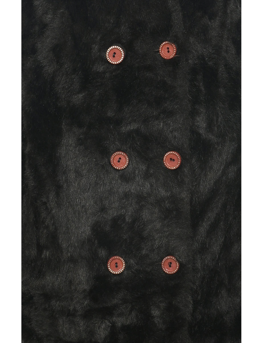 Double breasted faux fur coat. Comes in dark brown with multiple pockets.