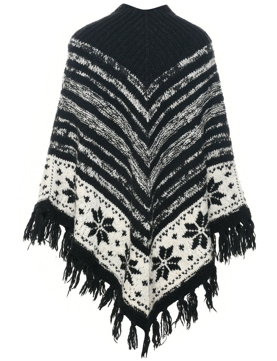 Nordic cape in black with fringing.