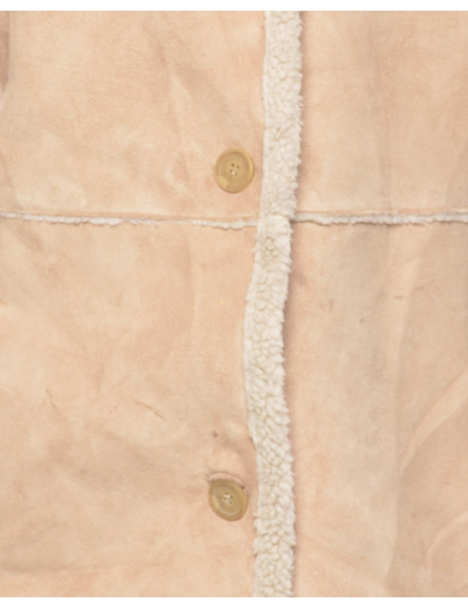 Single breasted coat. Comes in beige with shearling lining.