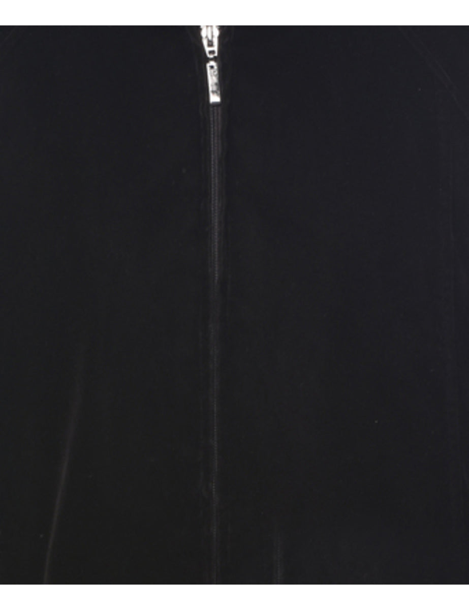 Velvet coat in dark brown with a hood and built in shoulder pads.