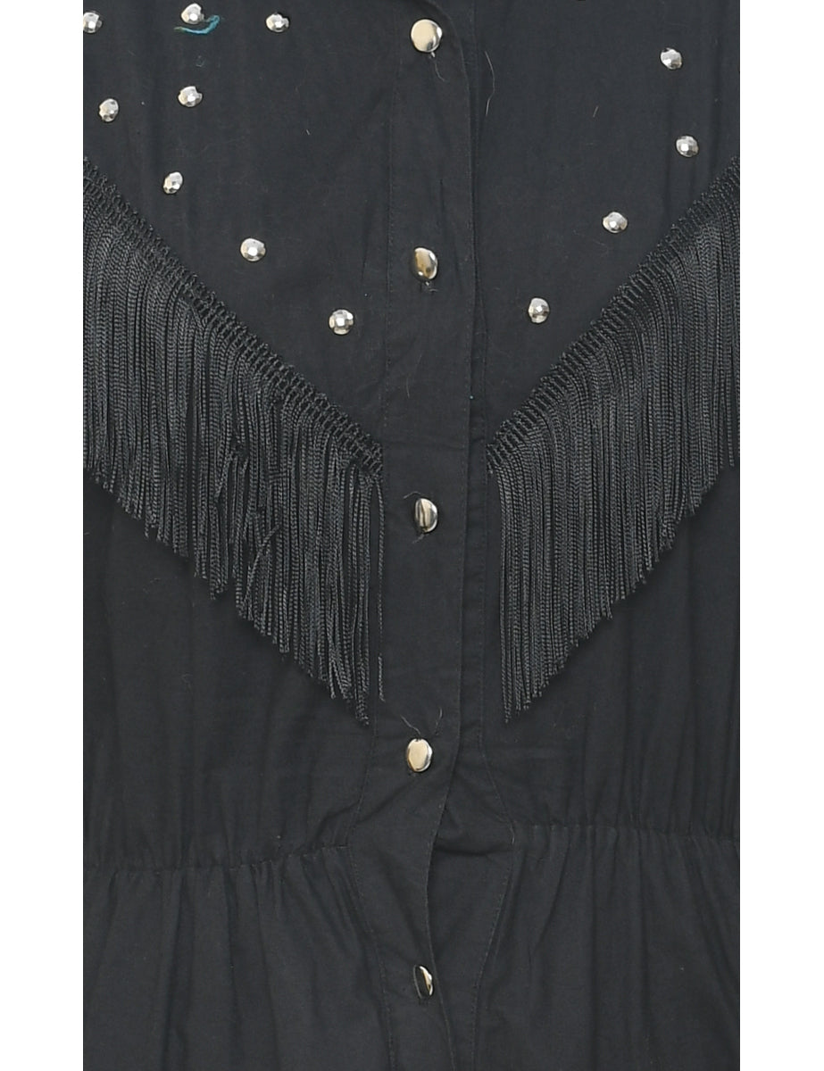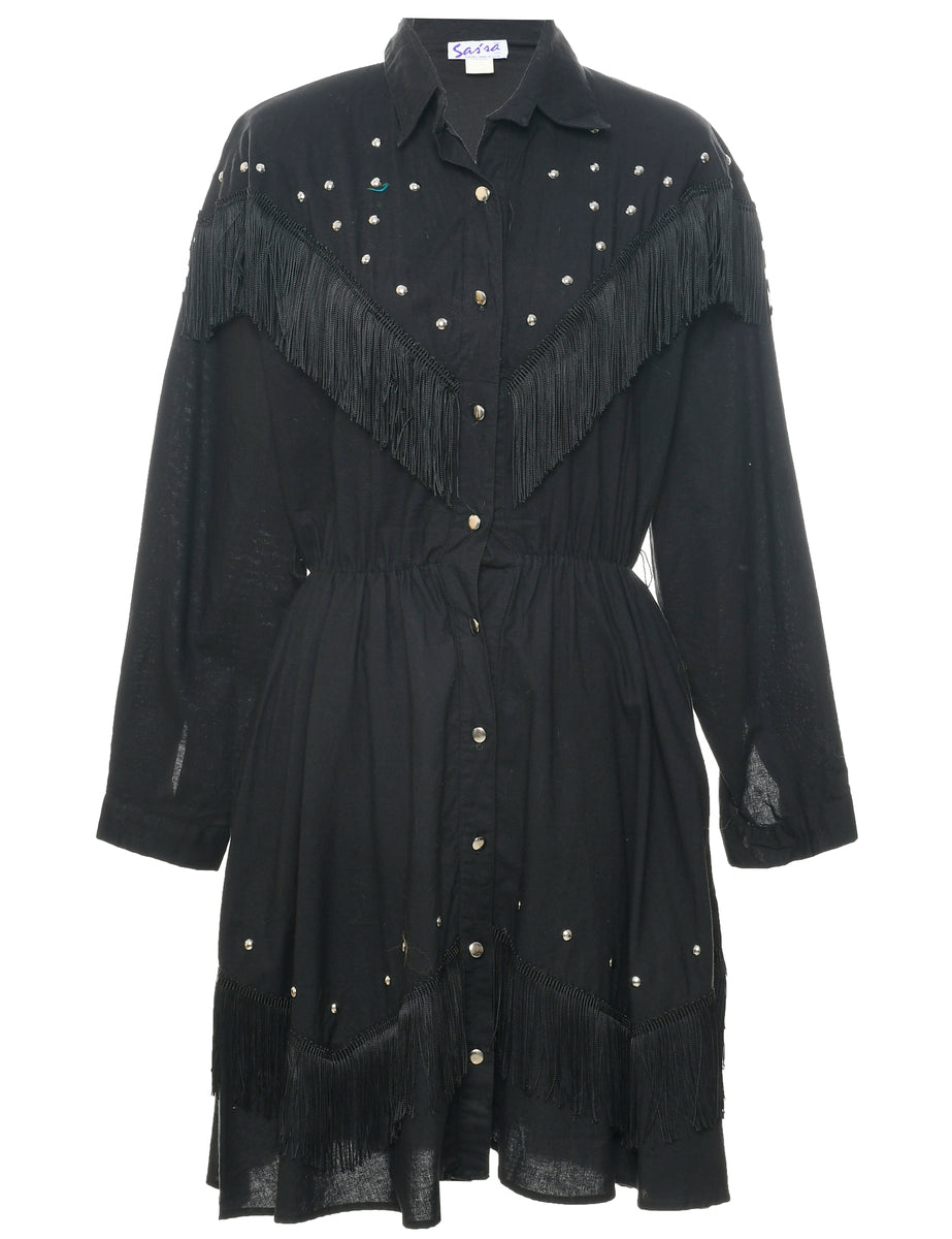 Vintage Black Western Dress - M