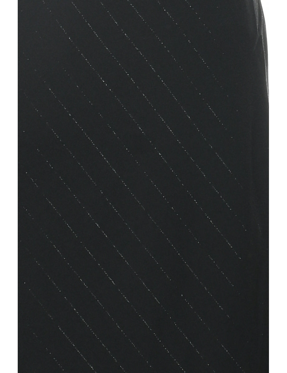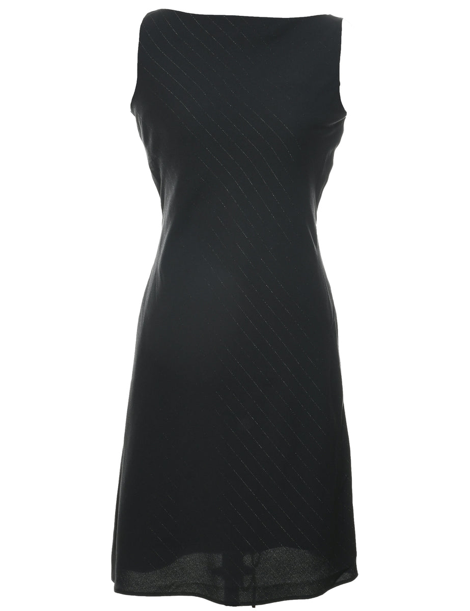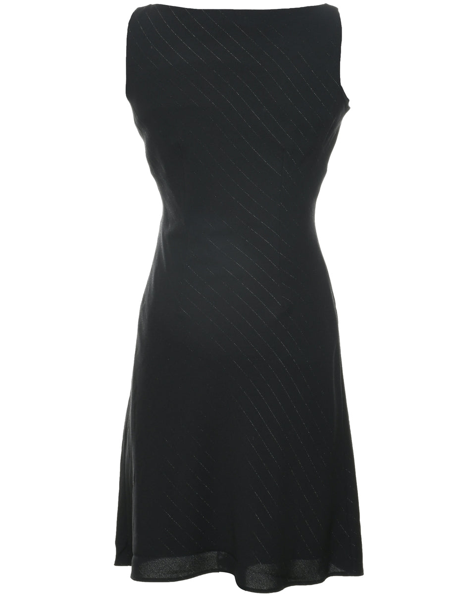 Pinstriped dress. Comes in black with a round neck.