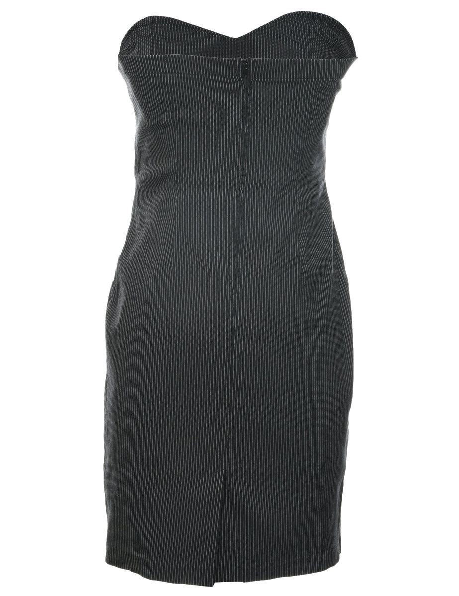 Pinstriped dress. Comes in black with a sweetheart neckline.