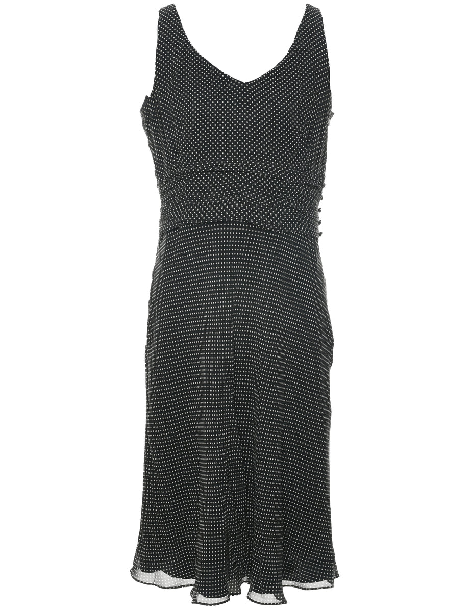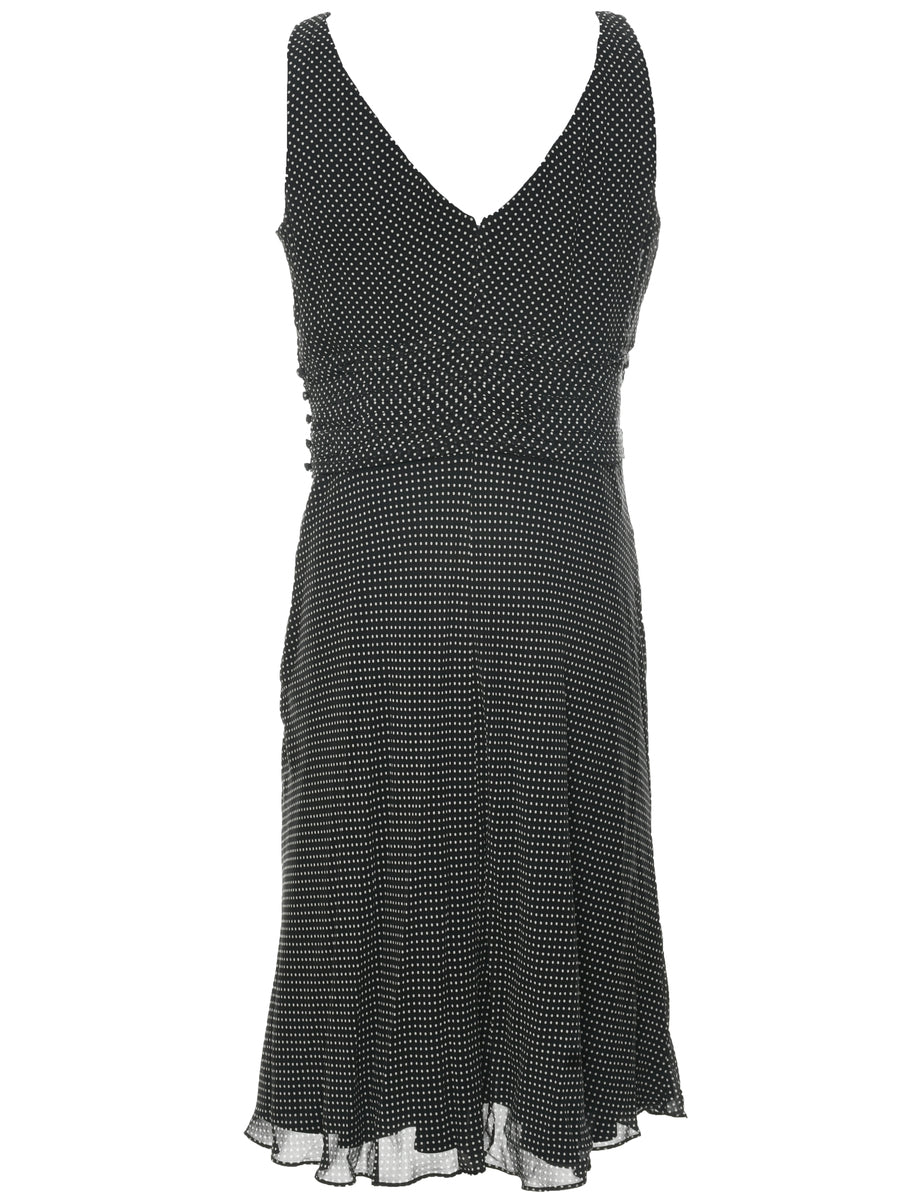 Polka dot dress comes in black with v neck.