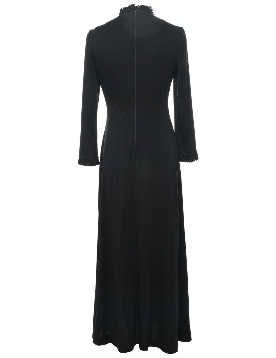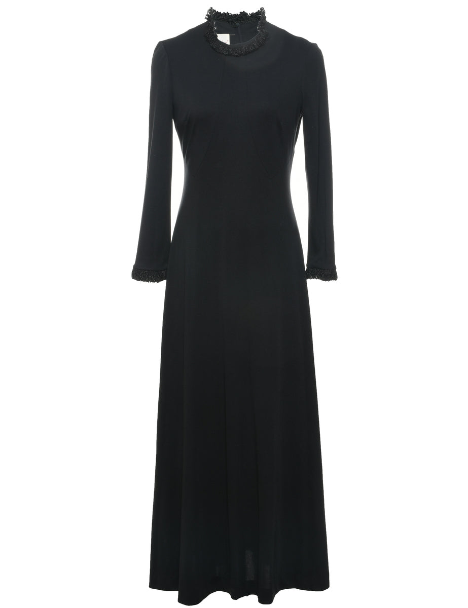 Classic maxi dress from the 1970s in black with contrasting trim.